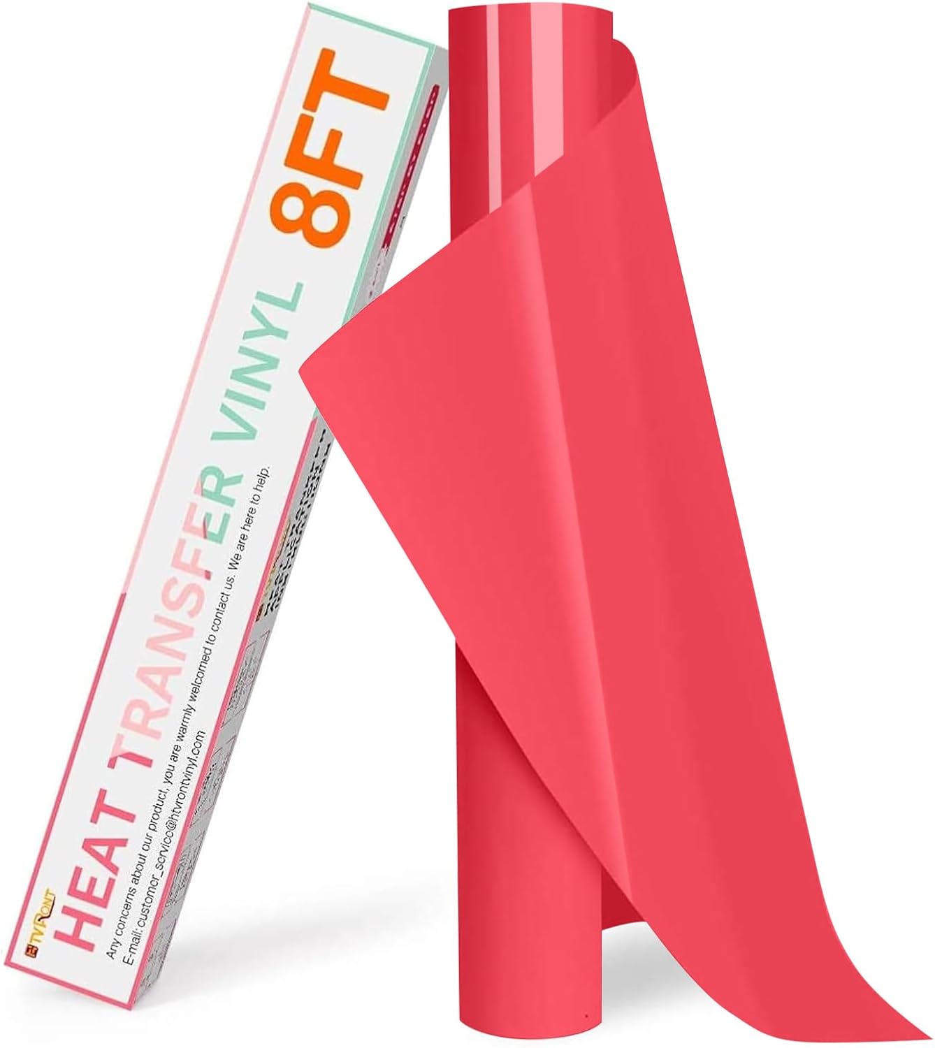HTVRONT Heat Transfer Vinyl Roll - 12" x 8ft Coral Red HTV Vinyl for T Shirts, Iron on Vinyl Compatible with Cricut Cutting Machine, Easy to Use for Craft Design (Coral Red)