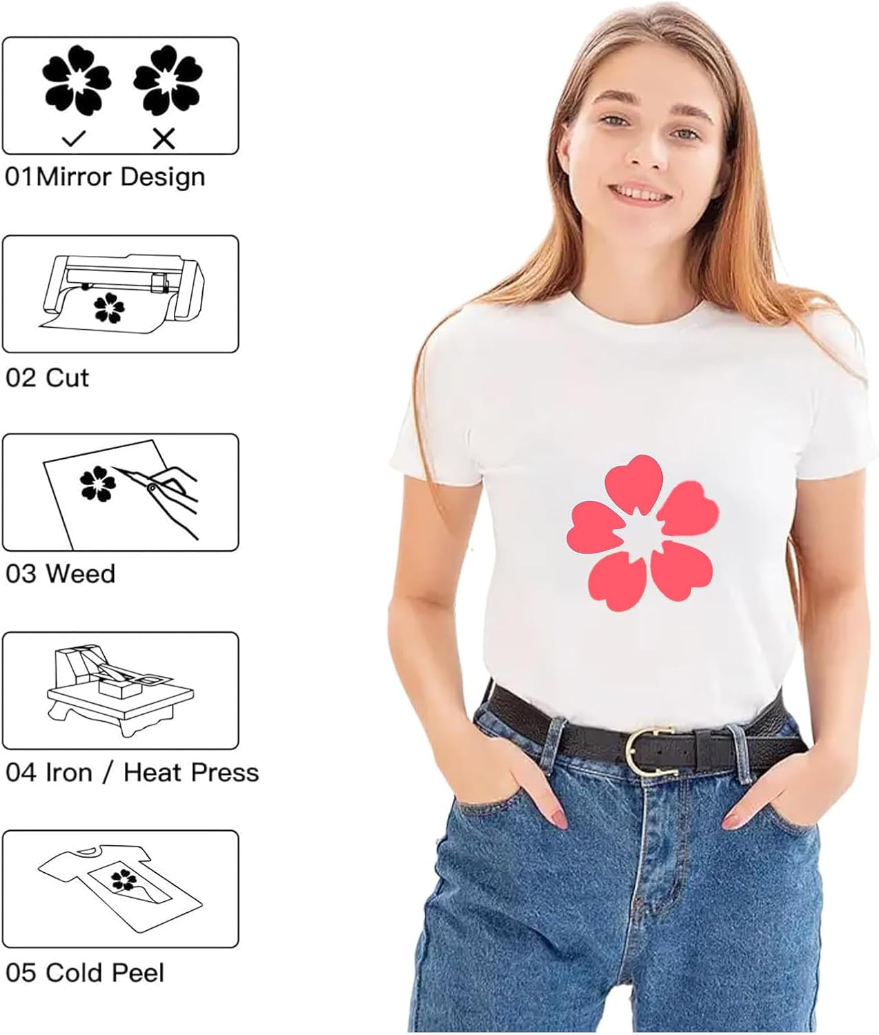 - 【EASY TO CUT WEED TRANSFER】Our premium quality heat transfer vinyl will save time which you may waste on each image or letter, because you can cut and weed easily through the designs just right. The iron on vinyl is sensitive to temperature and pressure, which can be heat transferred to any t-shirt easily. Before cutting, make sure the blade is clean and sharp, so that your design can be cut well and weeding can be done better
