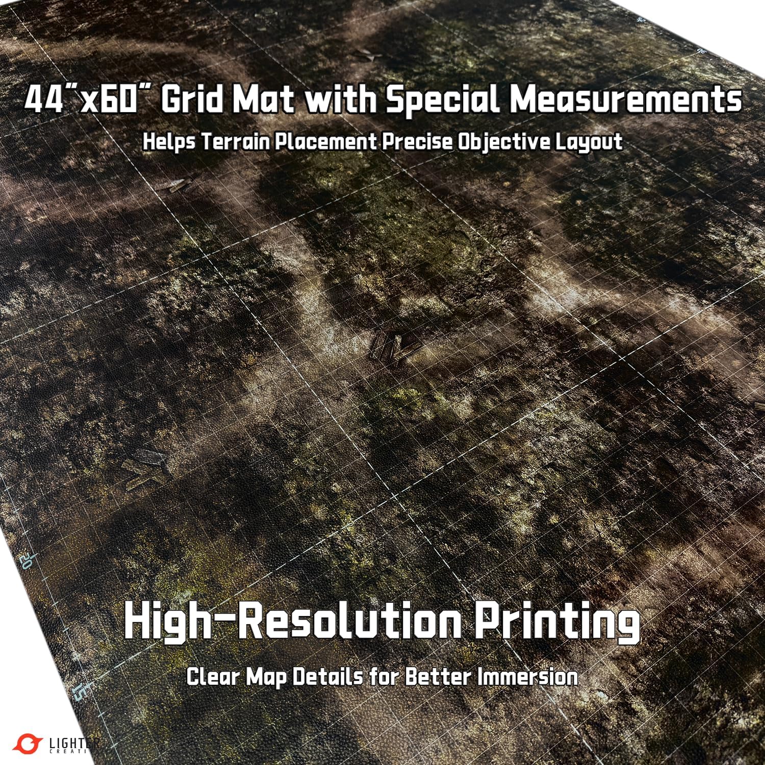 44'' x 60'' Battle Mat Gridded War-Gaming Mat for WHAoS - Made of Synthetic Leather, 1.1mm Thickness (Blighted Gloommoor)