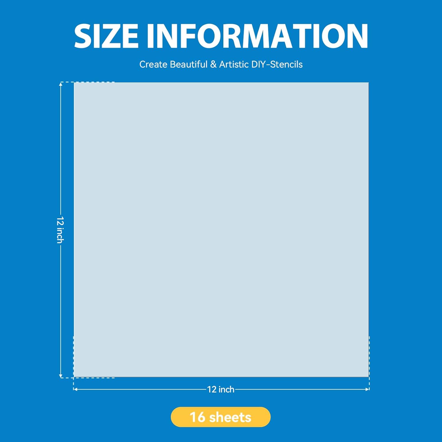 - Blank blank stencil sheets for Unlimited Creativity:Introducing our blank stencil sheets crafted from 16 PCS 7.5 Mil thick premium PET material, also known as mylar sheet or mylar stencil sheets. Each sheet measures 12x12 inches, providing ample space for your intricate designs. Ideal for creating customizable stencils for painting, stencils for crafts reusable, and various other stencil applications, these sheets are lightweight, heat-resistant, washable, and reusable, making them the perfect stencil paper or stencil material for your next DIY project