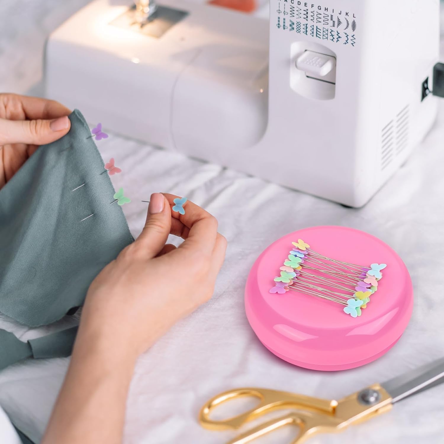 Oukitoymer Magnetic Pin Cushion with 100pcs Butterfly Head Straight Pins, Bobby Pin Holder for Sewing, Magnet Needle Cushion, Paper Clip Collector, Secure Pin Storager, Sewing & Quilting Accessories