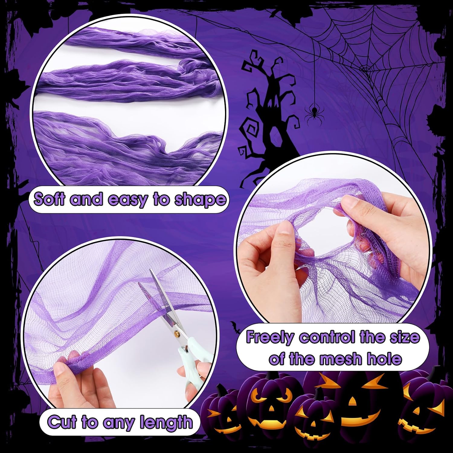 - Horror Large Halloween Cheese Cloth: this large Halloween cheese cloth measures 39.37 x 393.7 Inch, making it an ideal decoration for a fantastically spooky Halloween party; The size alone is commanding, covering a large area with a ghostly vibe, the spectral purple color adding to the eeriness; You can entangle your guests in a web of horror and make your party the talk of the festival