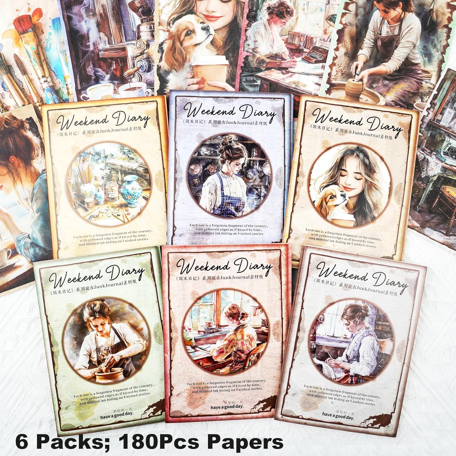 - Vintage-Themed Assortment: Features 6 aesthetic themes including cafΓ©, sewing, reading, and art, each with 10 unique designs and 3 copies per design, totaling 180 sheets that enrich your scrapbook or journal with nostalgic charm
