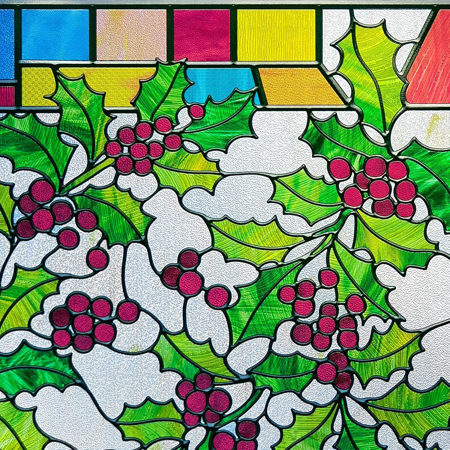 - Holly - This enchanting window film design brings the crisp elegance of winter foliage into your home, featuring artfully arranged holly leaves and berries that symbolize warmth and vitality during the colder seasons. The rich green and red color palette creates a cozy yet sophisticated atmosphere, perfect for adding festive charm or year-round natural beauty to your space.