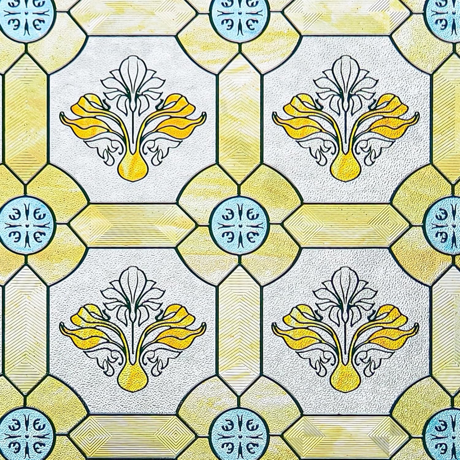 3D Stained Glass Window Film, Decorative Window Privacy Film for Bathroom,Front Door,Home, Sun Blocking Heat Control,Static Cling,23.6inch x 35.4inch Gilt Glazed Flowers