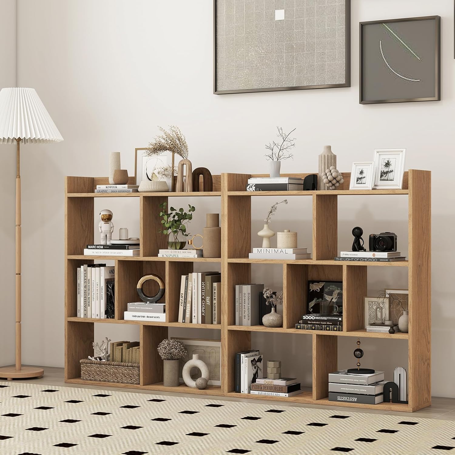 Giantex 7 Cubes Bookshelf, Free-Standing Wooden Bookcase, 4 Tier Home Display Shelf, Horizontal Storage Unit w/Anti-Toppling Devices, Open-Back Display Rack for Study, Living Room (2, Natural)