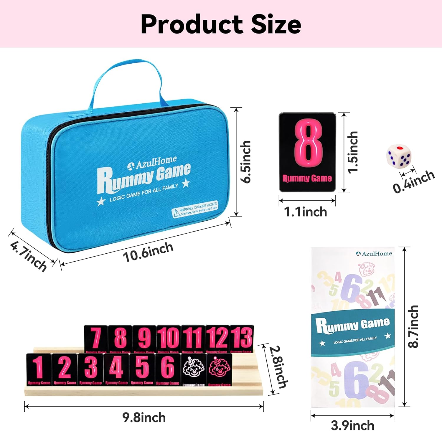 - Comprehensive All-in-One Set: AzulHome rummy tiles set includes 160 Acrylic colored tiles, 6 premium wooden trays (9.8" x 2.75" each), a portable zippered case, and instructions. It's a complete package for enjoyable game play anywhere.