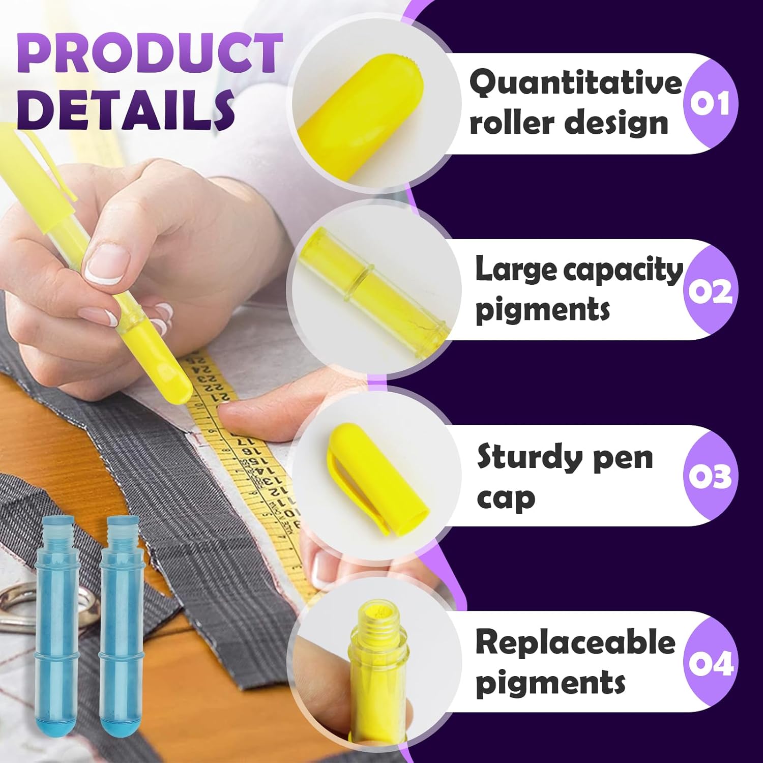 - Compatible with Most Clothing: Our sewing chalk for fabric have a small roller and a precision tip. It is a little master in handling the intricate details of fabrics. So fabric chalk for sewing is suitable for most of the fabrics on the market, such as fabrics, cottons, leathers and so on.