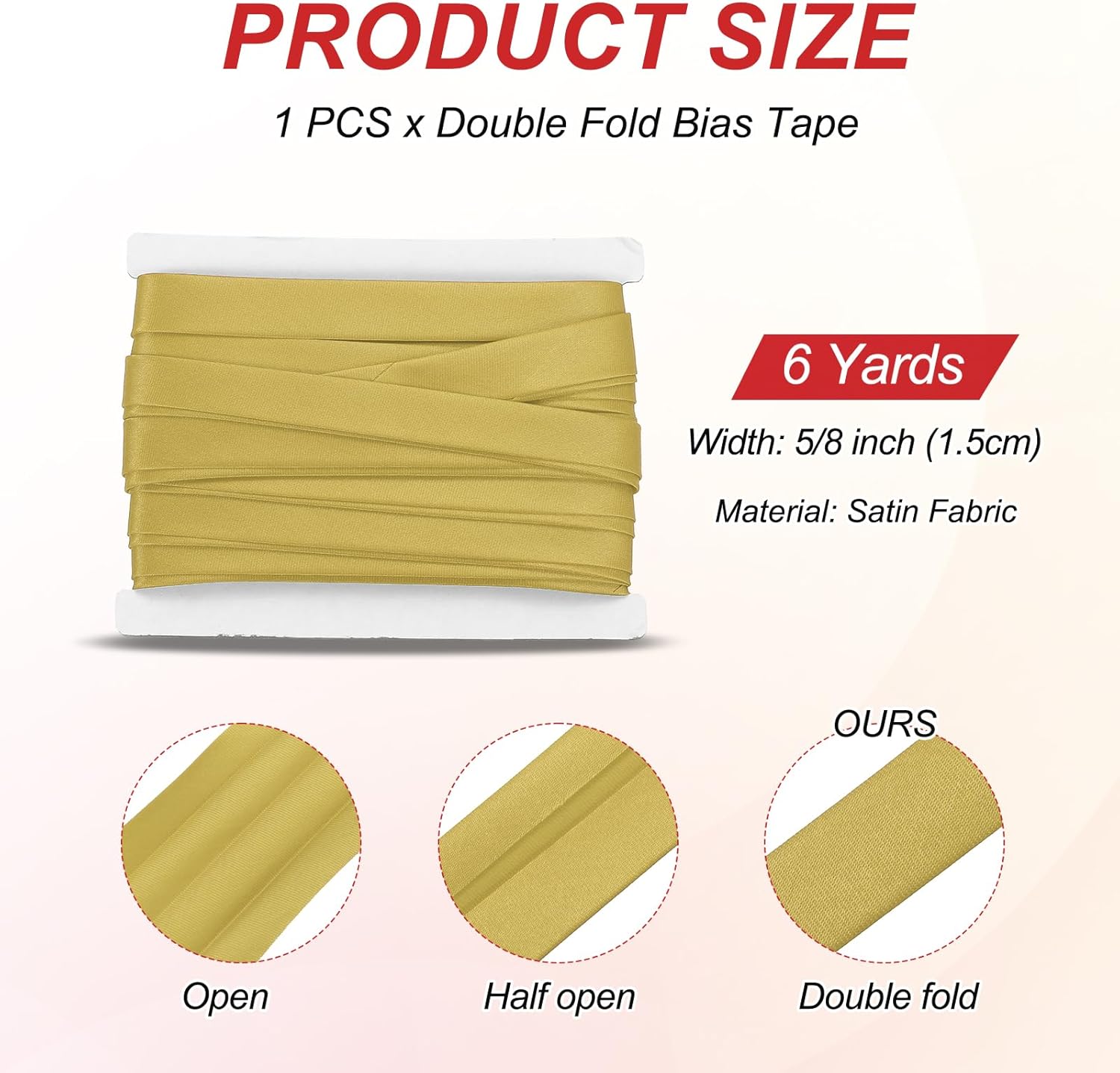 - Package contains: 1 x Double Fold Bias Tape; Width: 5/8 inch (1.5cm); Length: 6 Yards; Color: Gold Tone Tone; Material: Satin Fabric