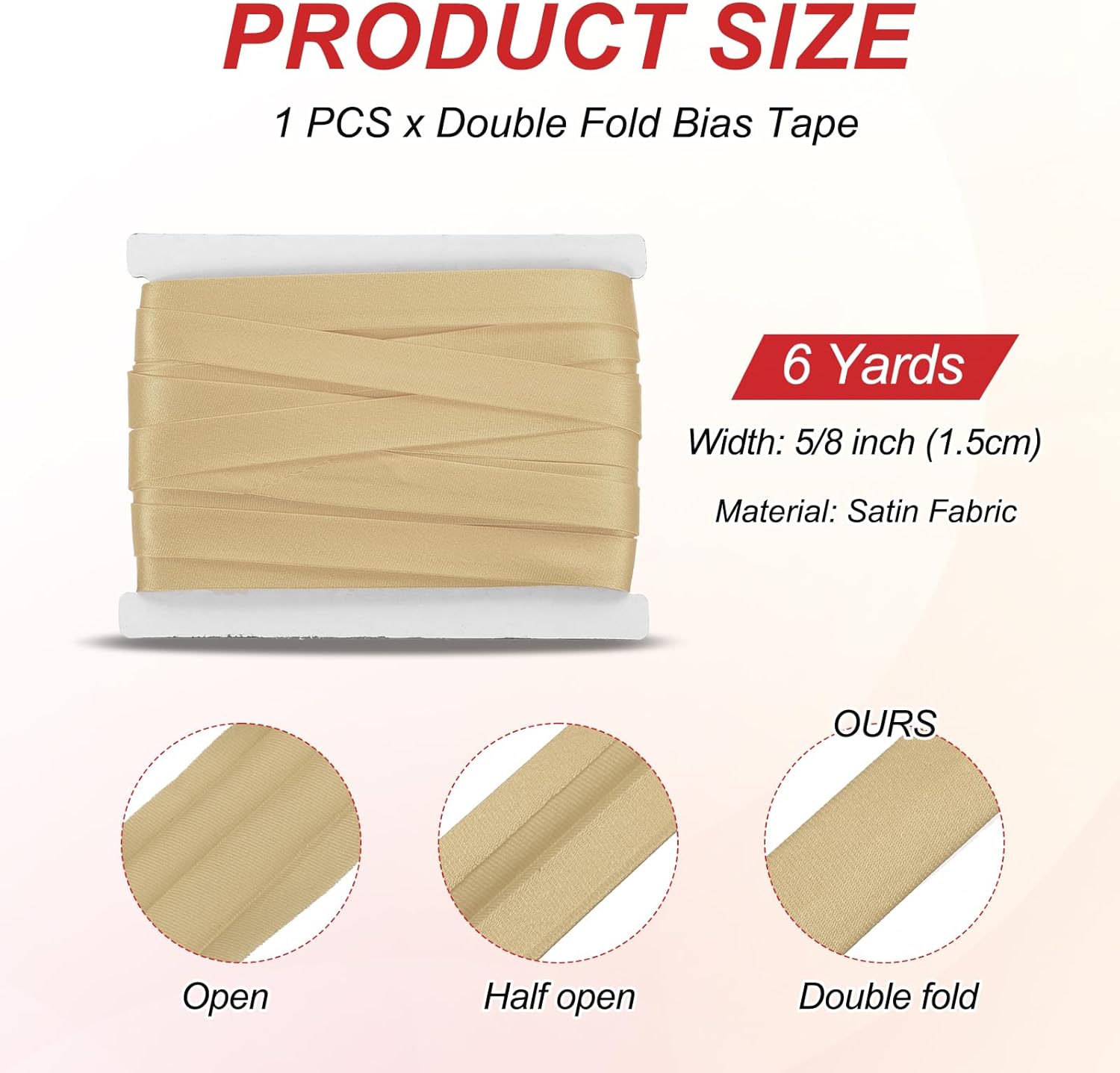- Package contains: 1 x Double Fold Bias Tape; Width: 5/8 inch (1.5cm); Length: 6 Yards; Color: Light Brown; Material: Satin Fabric