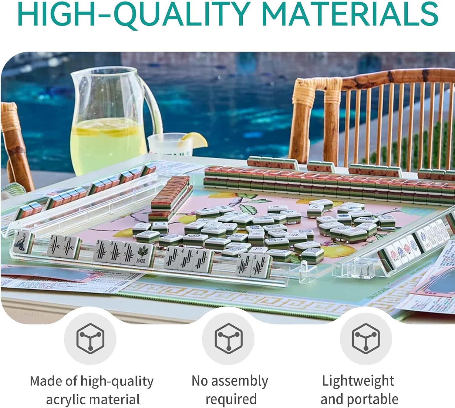 Mahjong Racks with Pushers, 4PCS Acrylic Clear Mahjong Racks, 4 Transparent Acrylic Mahjong Rack with Built in Pushers Set, Mahjong Accessories