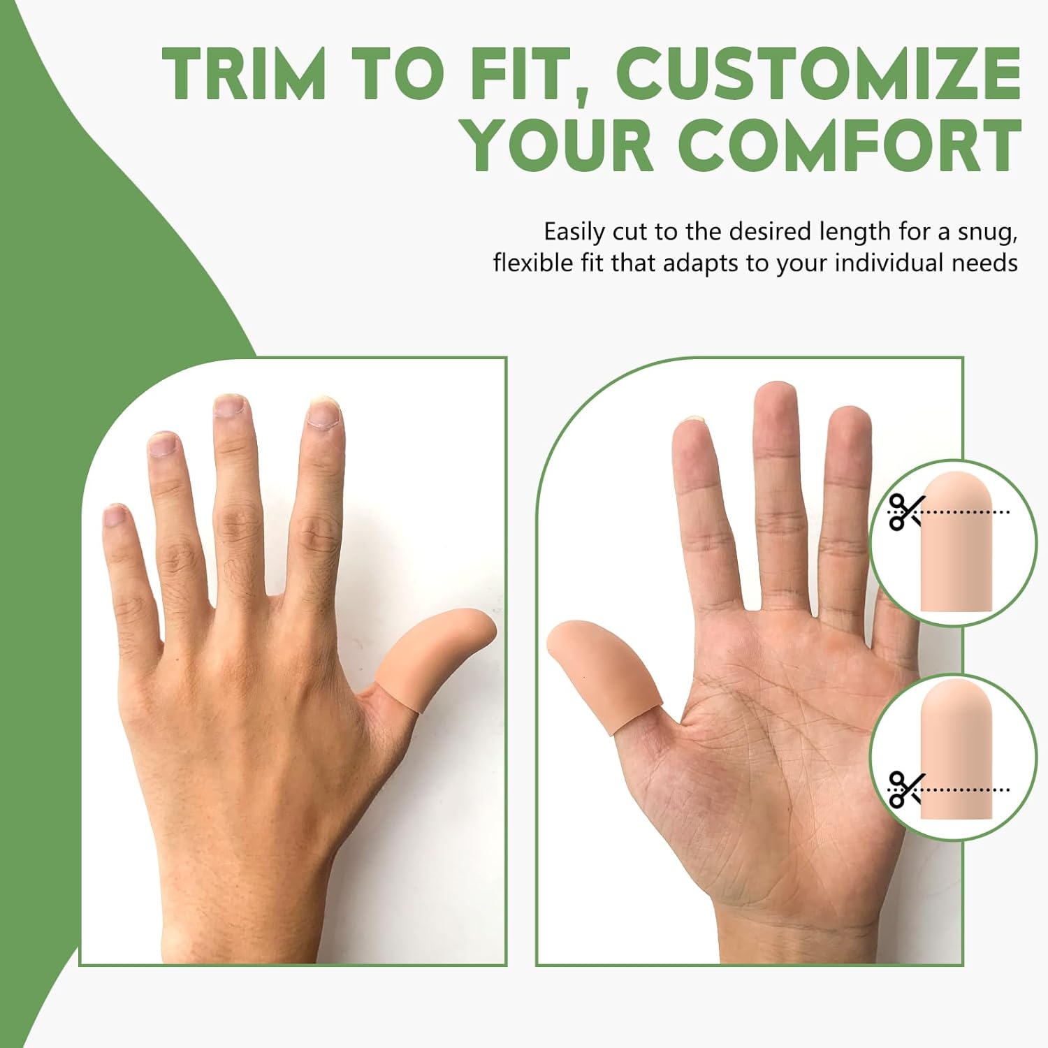 - RELIEF FROM PRESSURE, FRICTION, AND PAIN: These silicone finger protectors are a simple yet effective way to ease discomfort caused by arthritis, trigger thumb, or fingertip cracks. Acting as a breathable barrier, each fingertip protector reduces rubbing and pressure, making it ideal for both healing and prevention during work or daily activities.