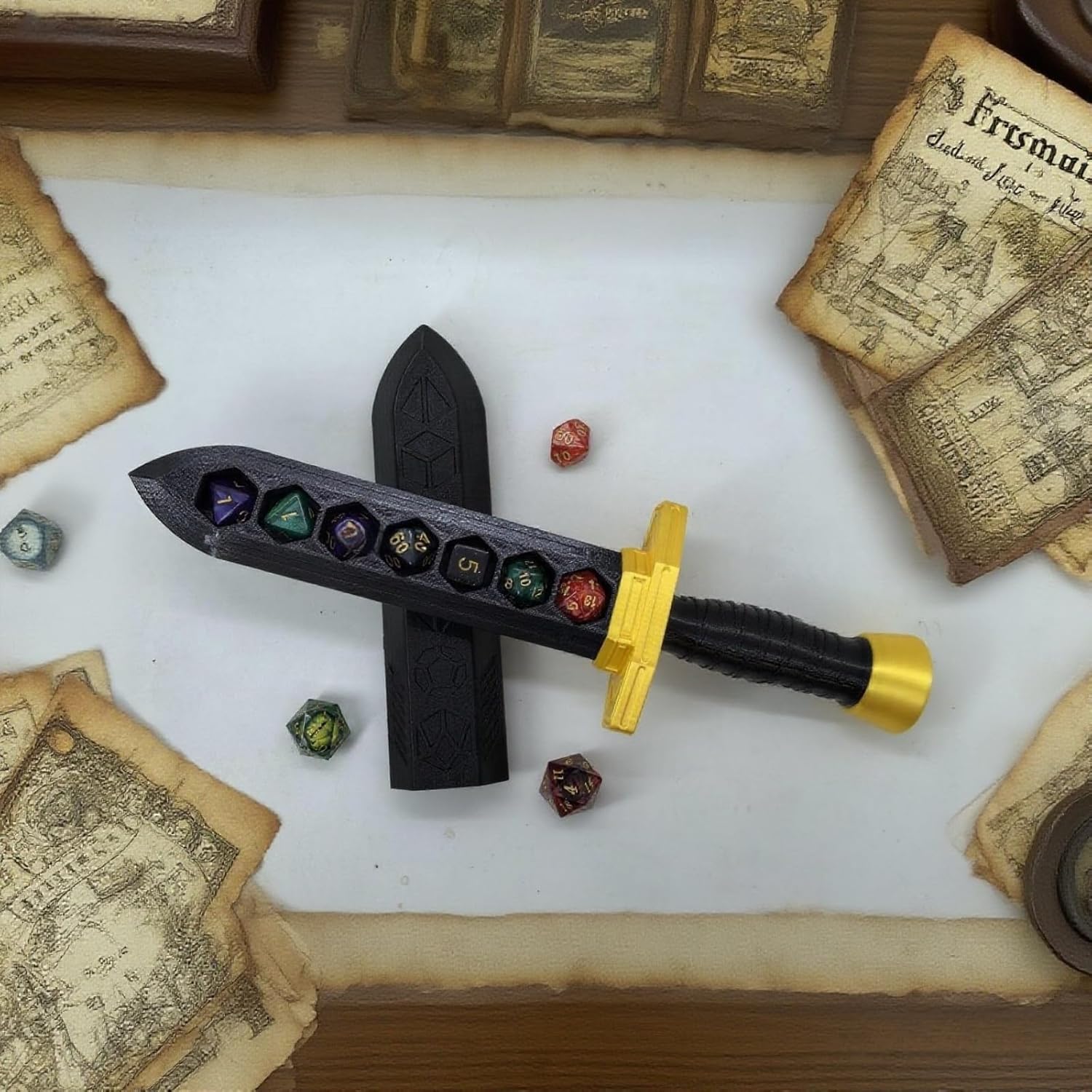 Dagger Dice Holder Box Dice Tower Dungeons and Dragons RPG Tabletop Roleplaying Game Jail DND (Random 7PCS D20 Dice Set Included) Black&Black&Gold