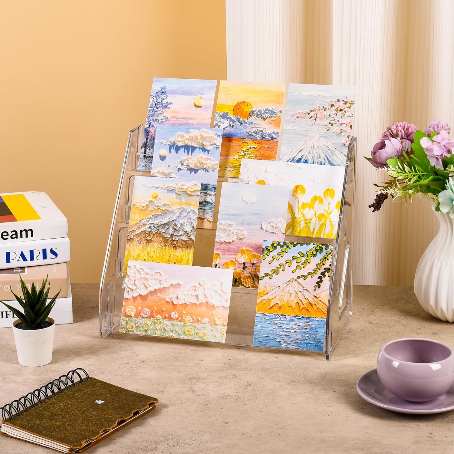 - 【NO MORE HIDDEN CARDS】Tired of cards blocking each other? This 4-tier angled stand displays every card clearly—graded slabs, stickers, postcards, and sports cards all shine with full visibility