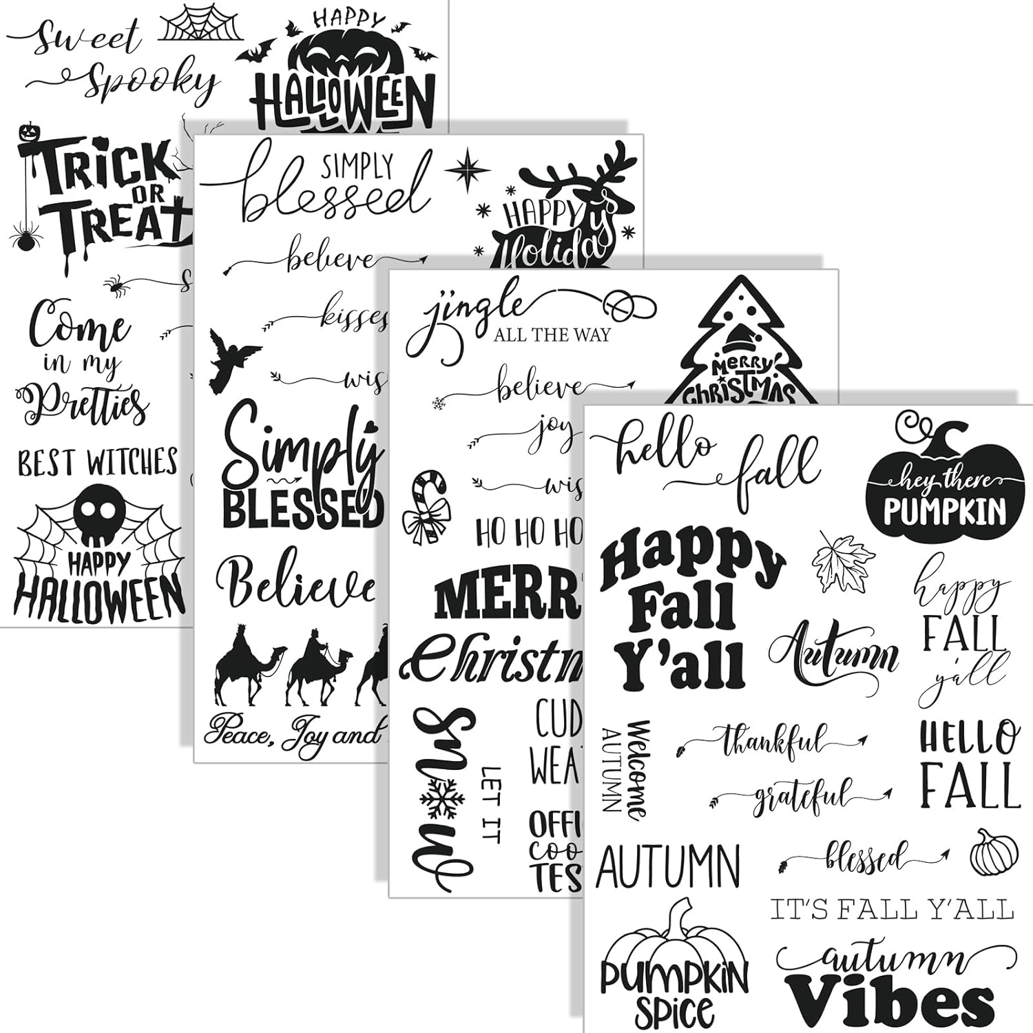 - Holiday Design: These clear stamps adopt holiday theme, designed with various festive words and patterns, such as hello fall, HAPPY HALLOWEEN, MERRY Christmas, FAITH over FEAR, etc., exquisite and eye-catching, suitable for various occasions