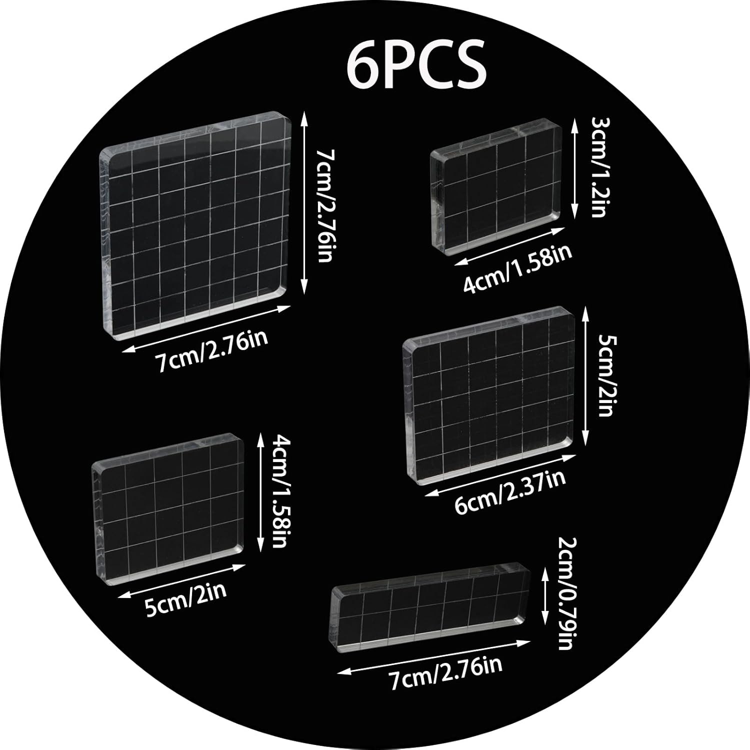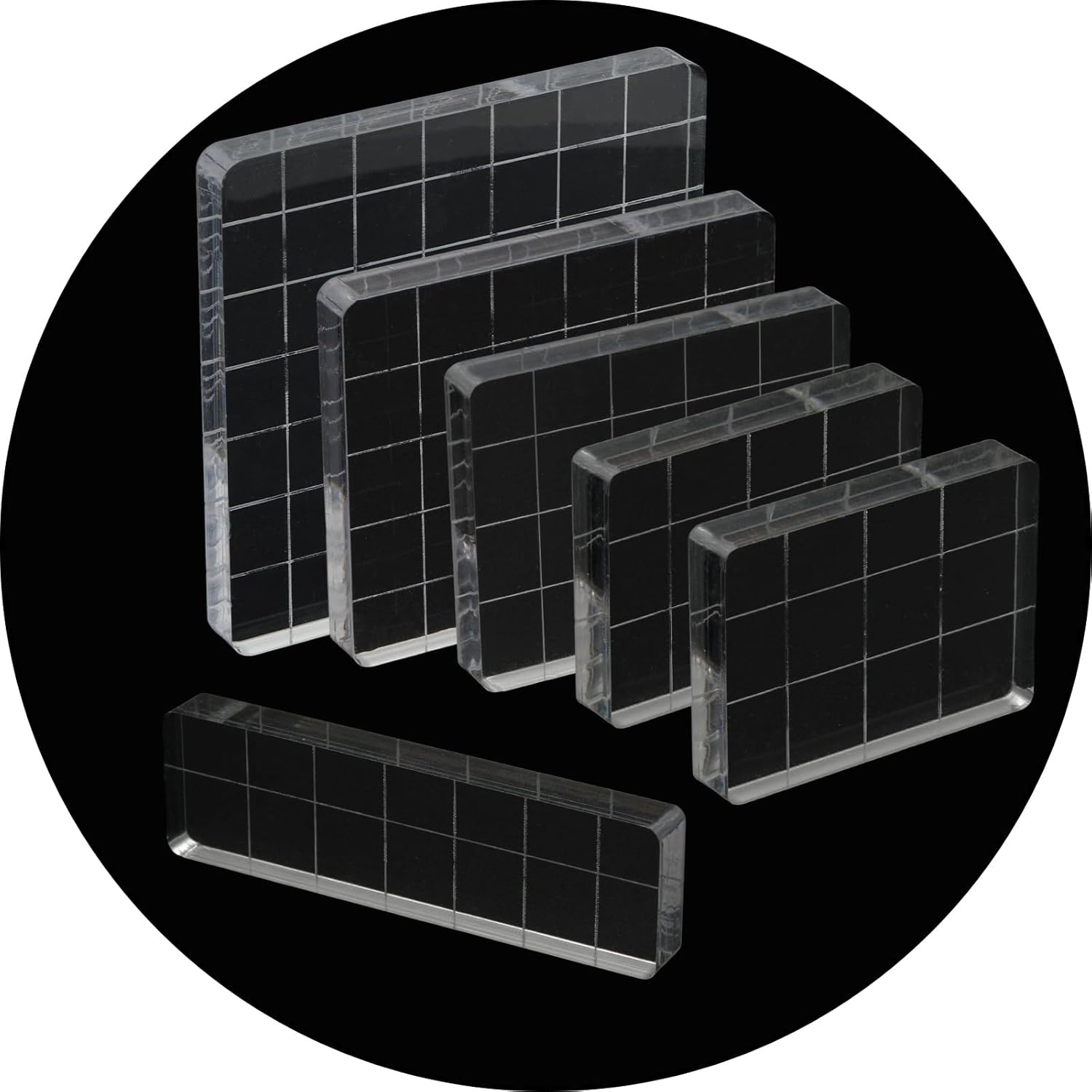 Pine & Linen 6 Pack Clear Stamp Blocks, Acrylic Tools Grid Lines Set, Scrapbooking Crafts for DIY Crafts/Scrapbooking/Card Making/Ornaments/Stamping Projects(Style-2)