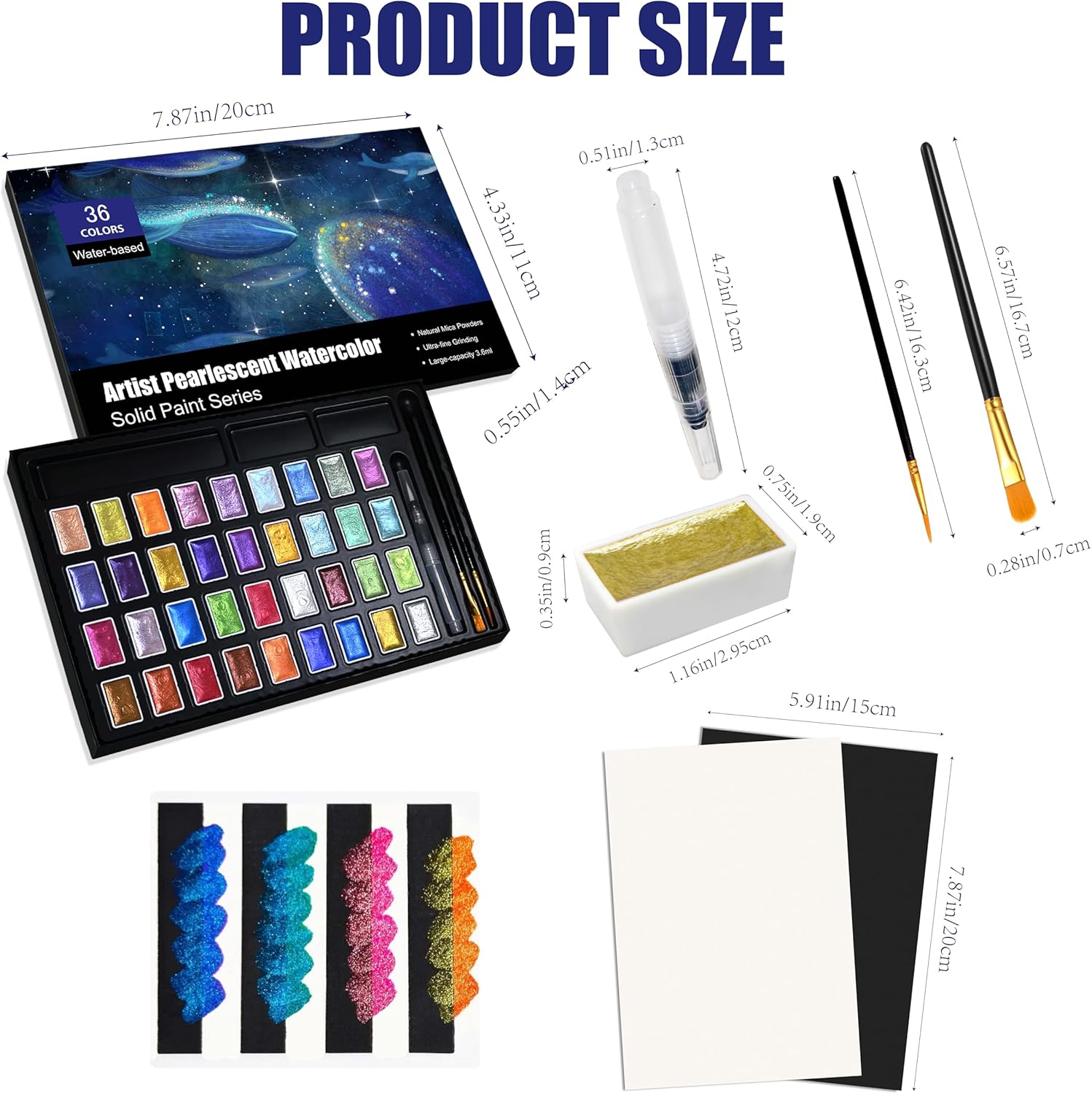 - Pearl Watercolor Paint Set - The GlisDyck professional watercolor kit features 12/36 vibrant colors with intense shimmer mineral pigments, Includes 2 brushes and 2 sinks. Metallic watercolor blend effortlessly, offering glitter effect on light/dark surfaces,Ideal for watercolor sets for adults &kids, the smooth formula dries quickly without clumping or flaking