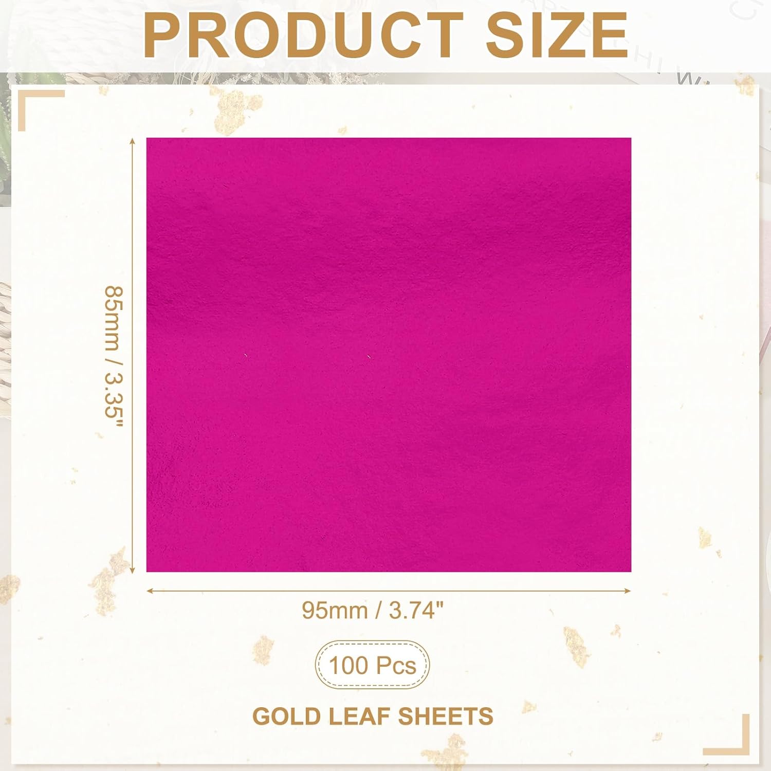 - Color: Pink; Total Size: 95 x 85 mm / 3.74 x 3.35 inch (LxW); Package List: 100 Pcs x Gold Leaf Sheets