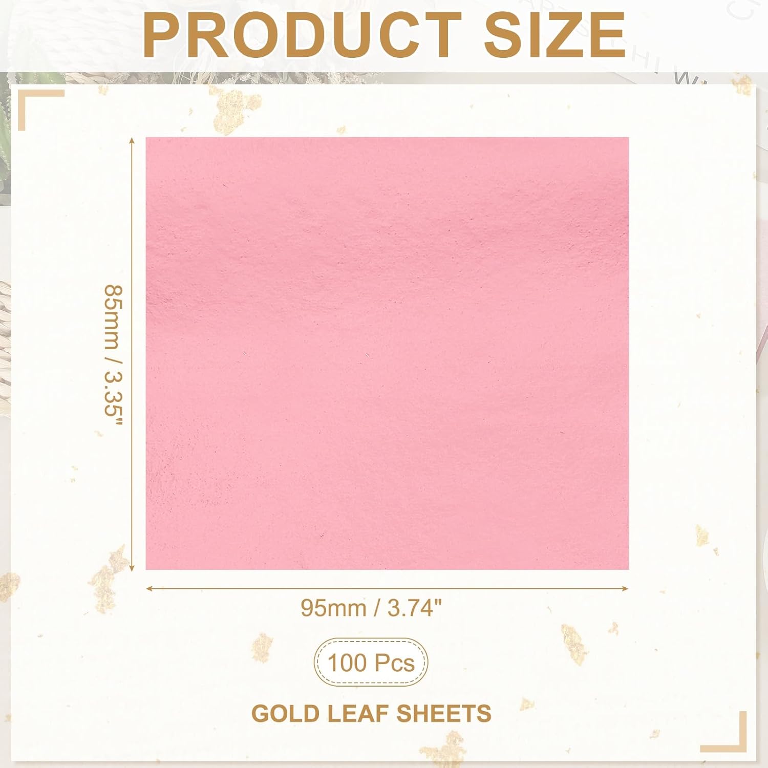- Color: Light Pink; Total Size: 95 x 85 mm / 3.74 x 3.35 inch (LxW); Package List: 100 Pcs x Gold Leaf Sheets