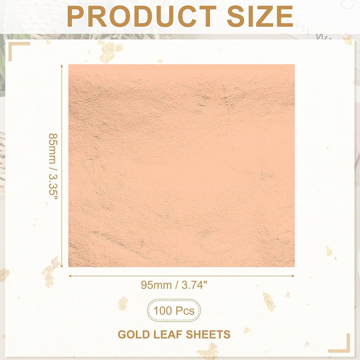 - Color: Rose; Total Size: 95 x 85 mm / 3.74 x 3.35 inch (LxW); Package List: 100 Pcs x Gold Leaf Sheets