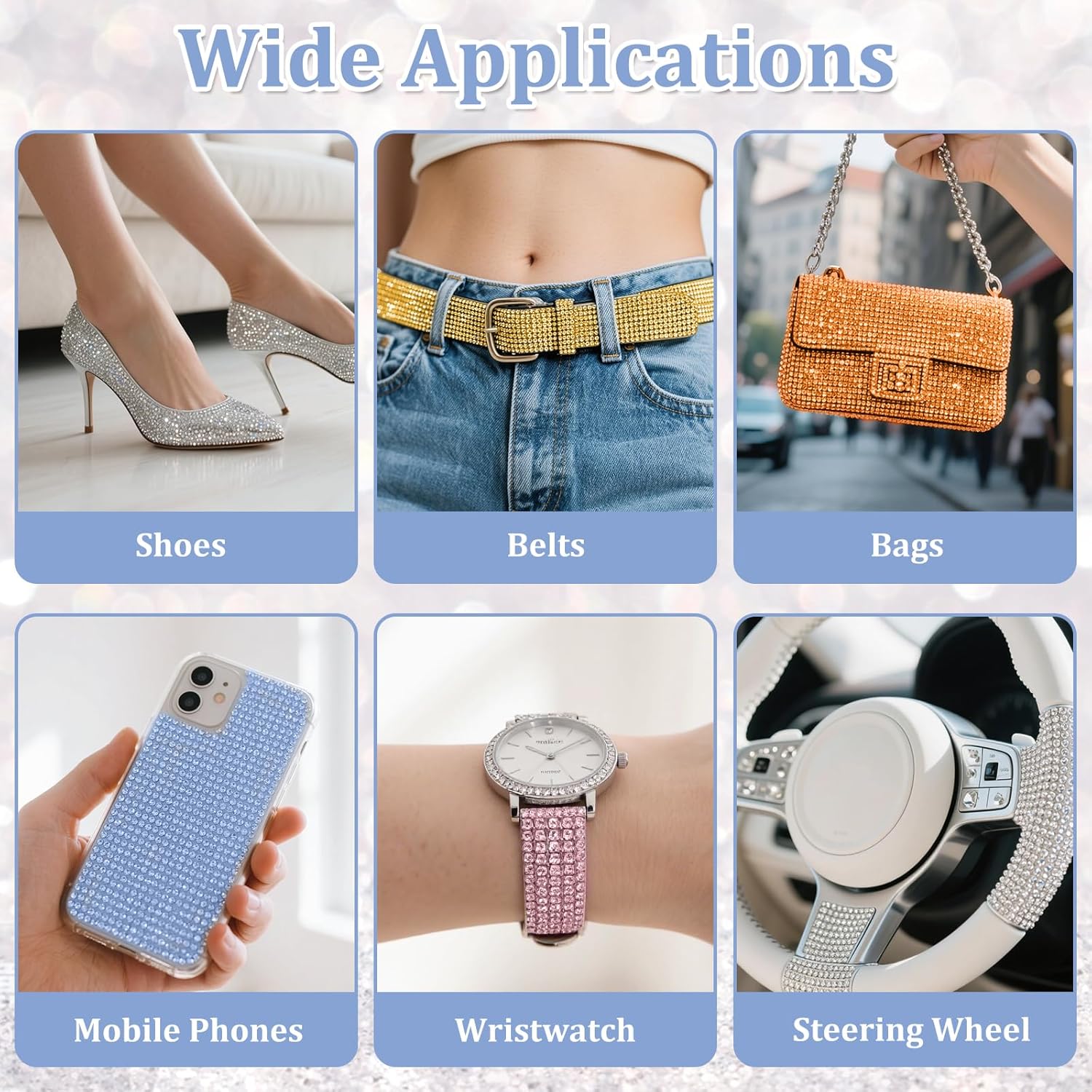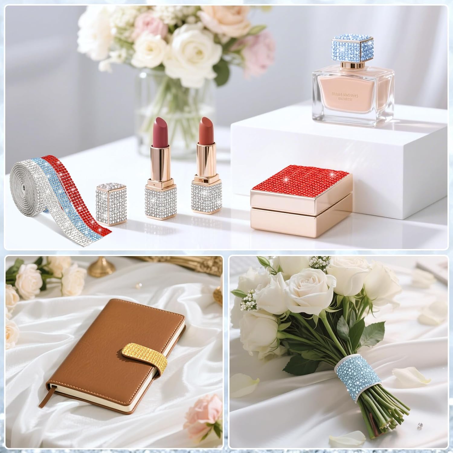 - 【Super Sticky Self Adhesive】The Rhinestone Ribbon Self Adhesive features high-viscosity stickers made with high-quality rhinestones and self-adhesive backings. The high-temperature-resistant hot-melt technology ensures durability. The strips stick securely to any smooth surface and provide a long-lasting glitter effect
