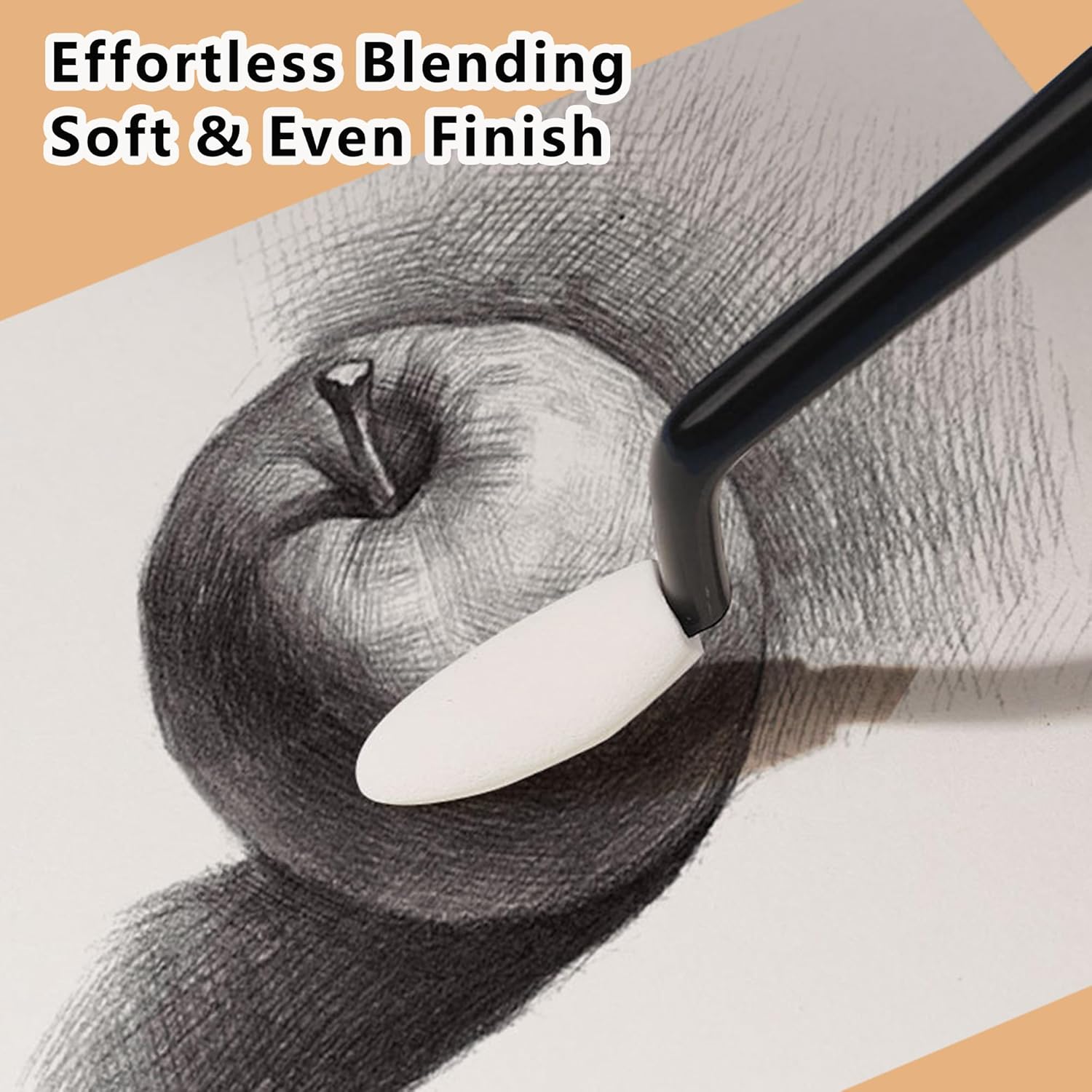 - 【Complete Blending & Correction Kit for Artists】: Includes 4 reusable handles + 40 replaceable sponge tips (20 round + 20 pointed) for smooth blending, shading, and erasing in charcoal, graphite, and pastel drawings