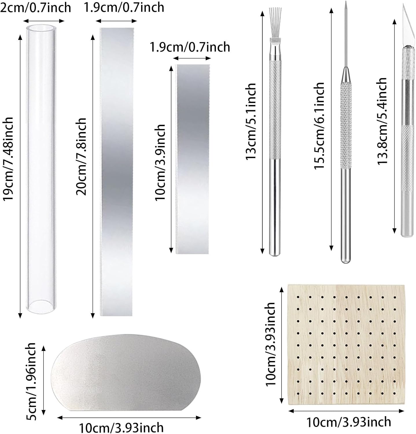 - Rotary cutting mat and clay needle tools: Rotary cutting mat is suitable for precise cutting, rolling, and measuring without damaging your work surface. Clay needle tools is for small detail work, such as fine detailing, piercing, smoothing edges, and creating intricate patterns in clay, ceramics, or epoxy resin crafts.