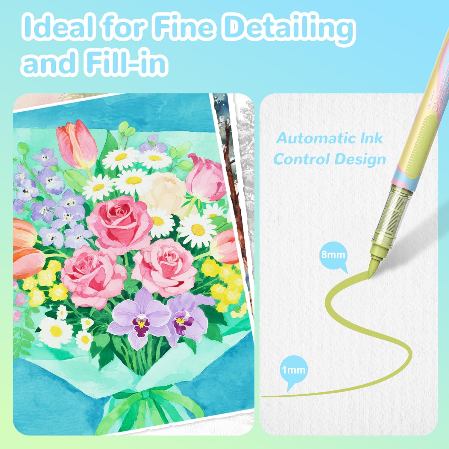 - 【FLEXIBLE BRUSH TIP】The flexible brush tip creates fine lines, bold strokes, and broad fills. One pen handles outlines, smooth coloring, and large graffiti—making every project easier and more creative.