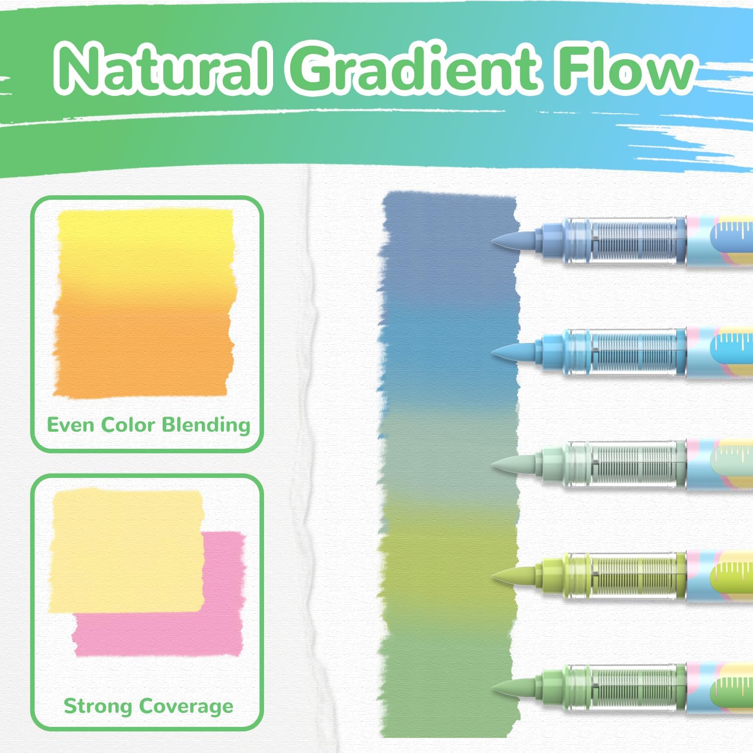 Guangna 12 Macaron Acrylic Paint Markers Set, Brush Tip Acrylic Paint Pens for Rock Painting, Wood, Glass, Paper, Coloring Book, Ceramic, Canvas, Water-Based Ink