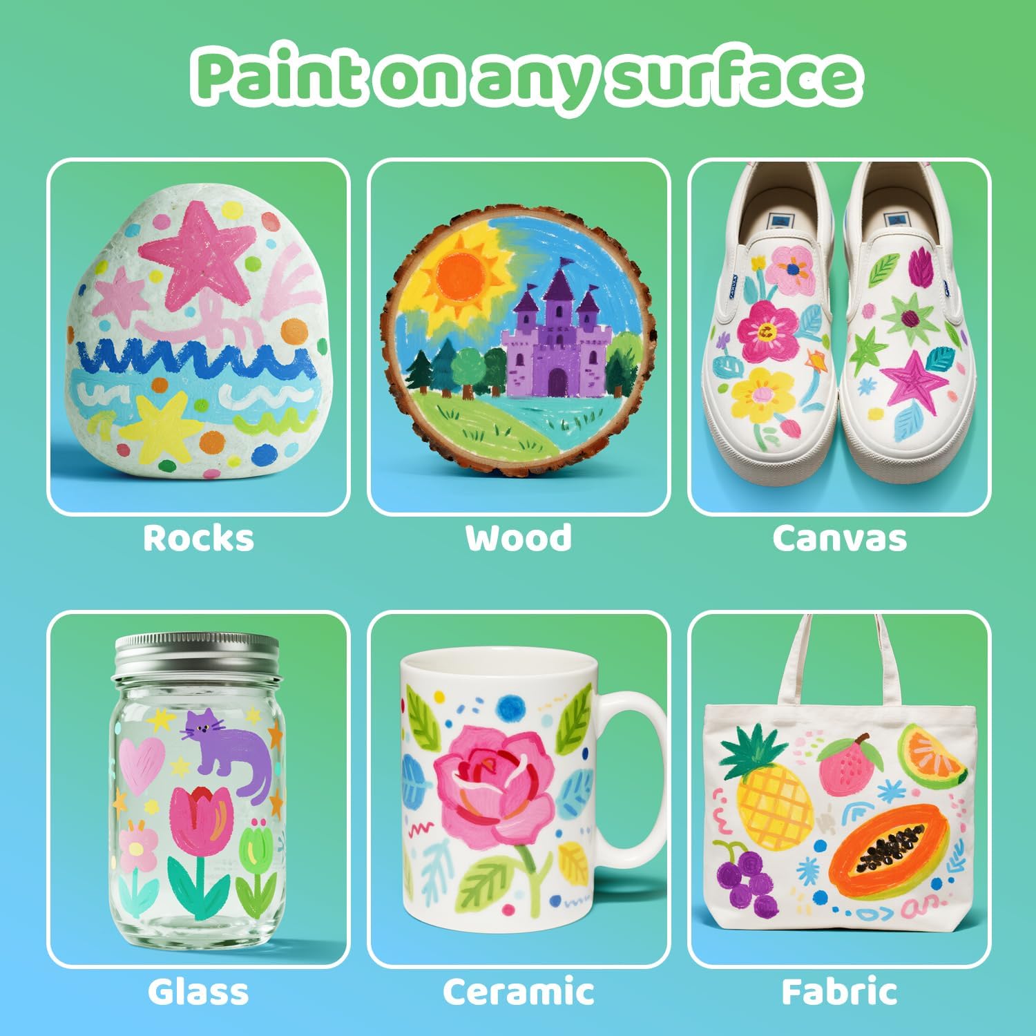 - 【WORKS ON 20+ SURFACES】Suitable for rock painting, coloring book, paper, ceramic, wood, fabric, stone, canvas, metal, plastic, resin, shoes, clothes, leather, ornaments, posters, and more. Perfect for DIY gifts, seasonal decorations, and graffiti projects.