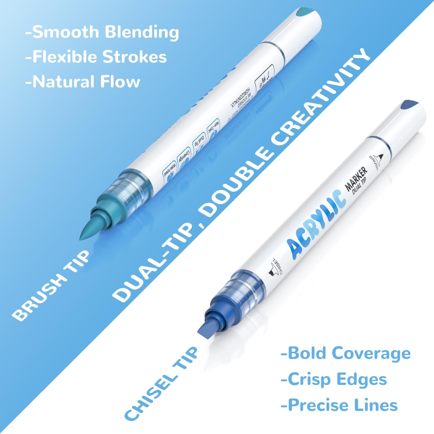 - 【DUAL TIP DESIGN】Brush tip flows with smooth blending and flexible strokes; chisel tip delivers bold coverage and crisp edges.