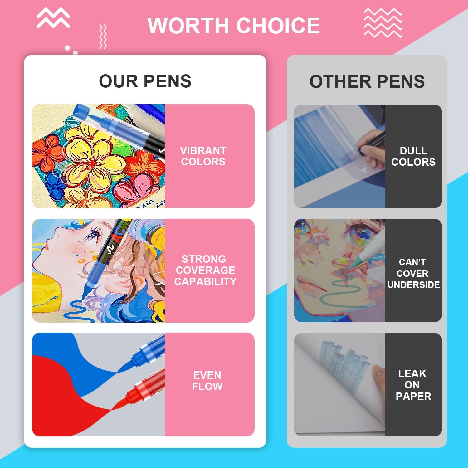 - 🌈Smooth Writing, Waterproof & Quick-Drying: This acrylic pens feature an advanced ink control system that ensures smooth, even flow and prevents nib clogging for seamless writing and drawing. The soft brush tip allows precise control, making detail work easier. The waterproof design protects your creations from water damage, while the quick-drying ink reduces wait times, boosting efficiency in your creative process.
