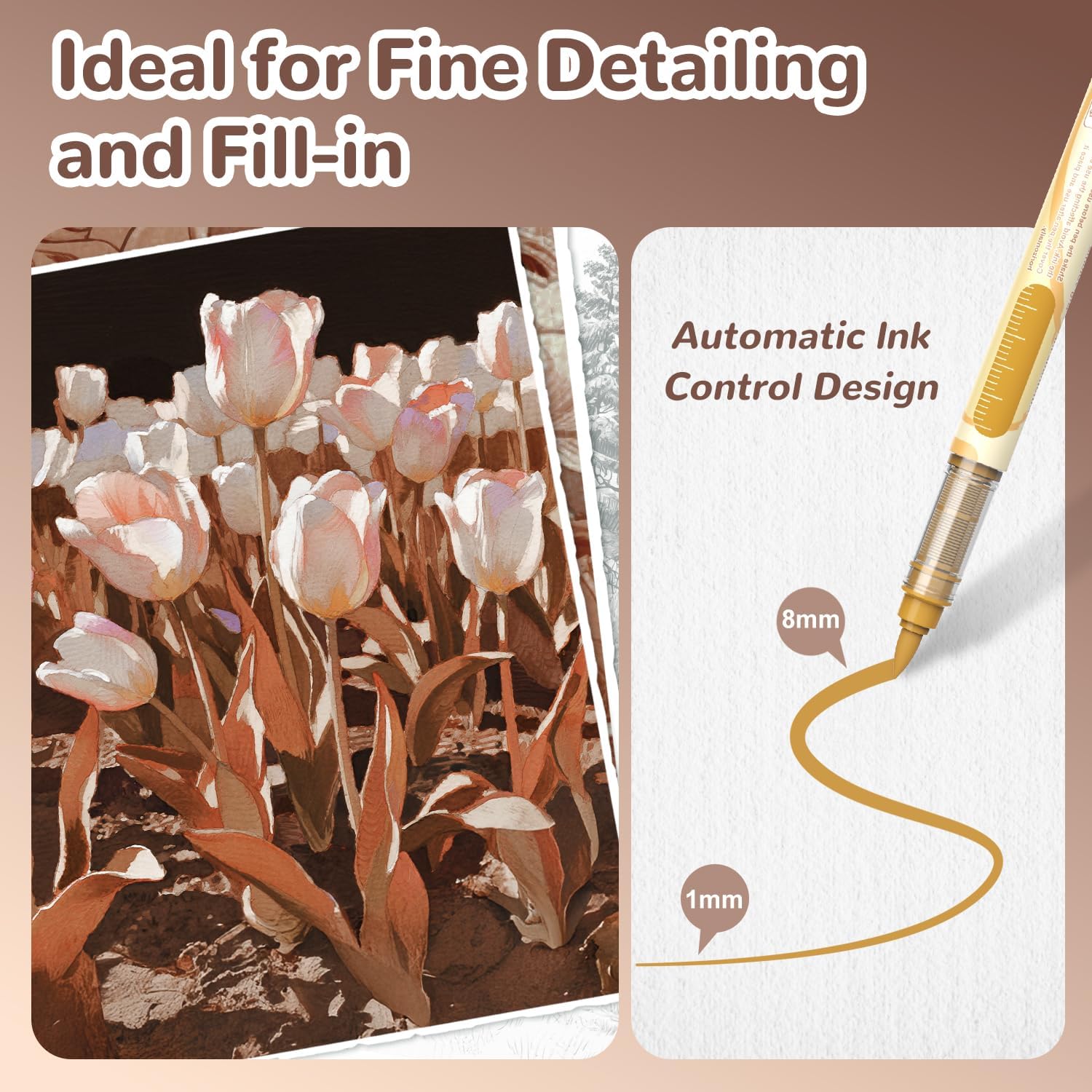 - 【FLEXIBLE BRUSH TIP】The flexible brush tip creates fine lines, bold strokes, and broad fills. One pen handles outlines, smooth coloring, and large graffiti—making every project easier and more creative.