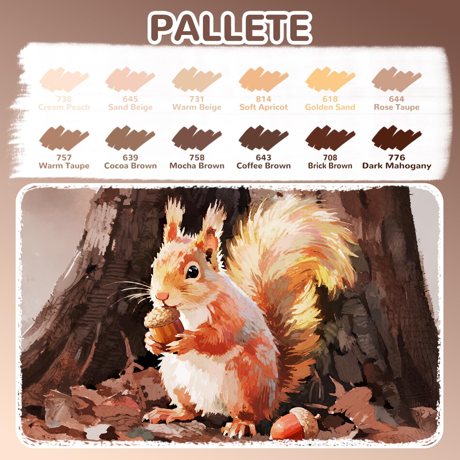 Guangna 12 Brown Series Acrylic Paint Markers Set, Brush Tip Acrylic Paint Pens for Rock Painting, Wood, Glass, Paper, Coloring Book, Ceramic, Canvas, DIY Crafts, Water-Based Ink
