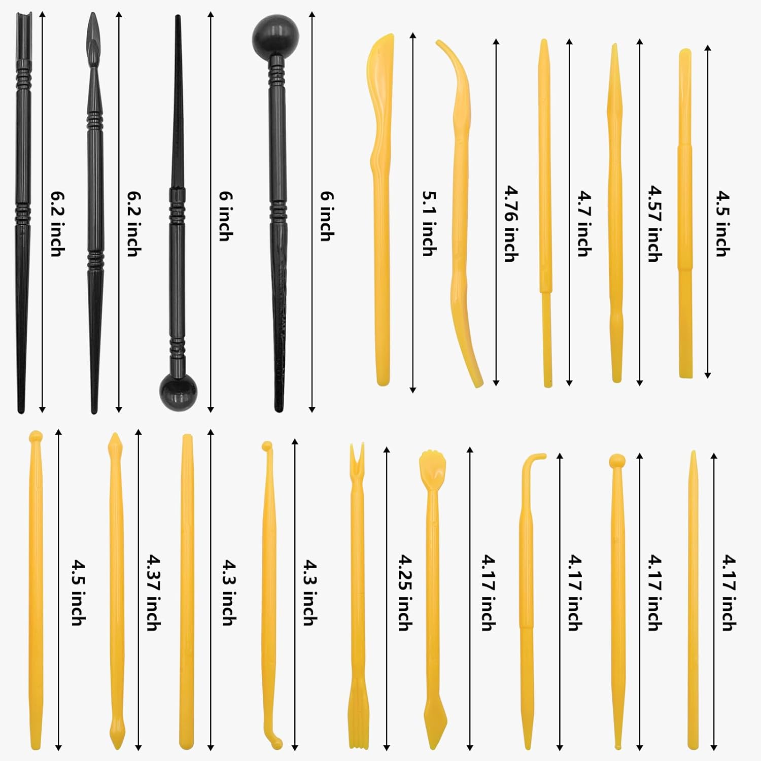 - COMPACT, PRACTICAL & CREATIVE: Each tool in this clay tools sculpting set measures around 4.5 inches and is compact enough to carry wherever inspiration strikes. Whether you're working on tiny clay figurines or decorating baked goods, this easy-to-store set is always within reach and ready for your next artistic project.