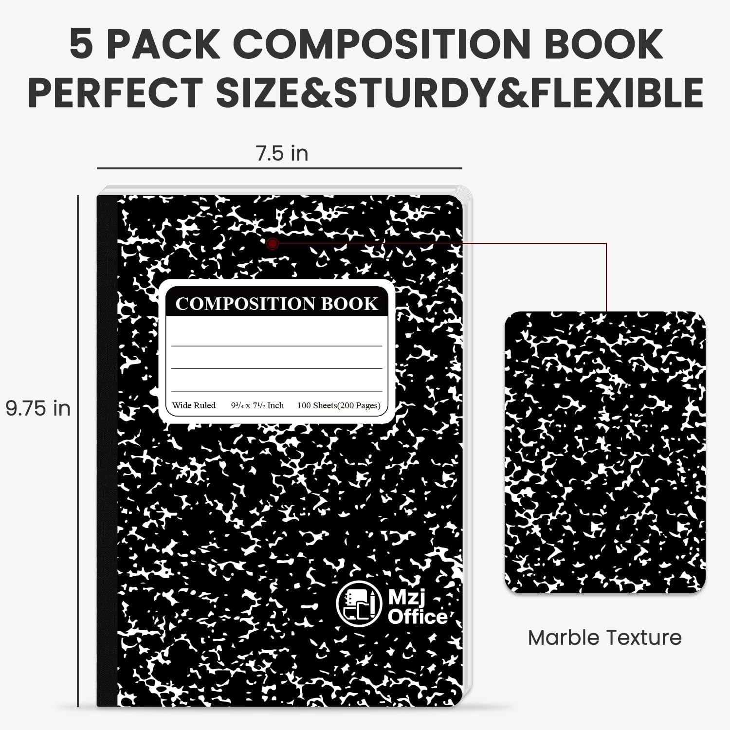 Marble Composition Notebook, 5-Pack Bulk Composition Notebooks Wide Ruled, 100 Sheets (200 Pages) 7-1/2" x 9-3/4" Marble Notebooks Wide Ruled, Classroom Must Haves-School Supplies College.