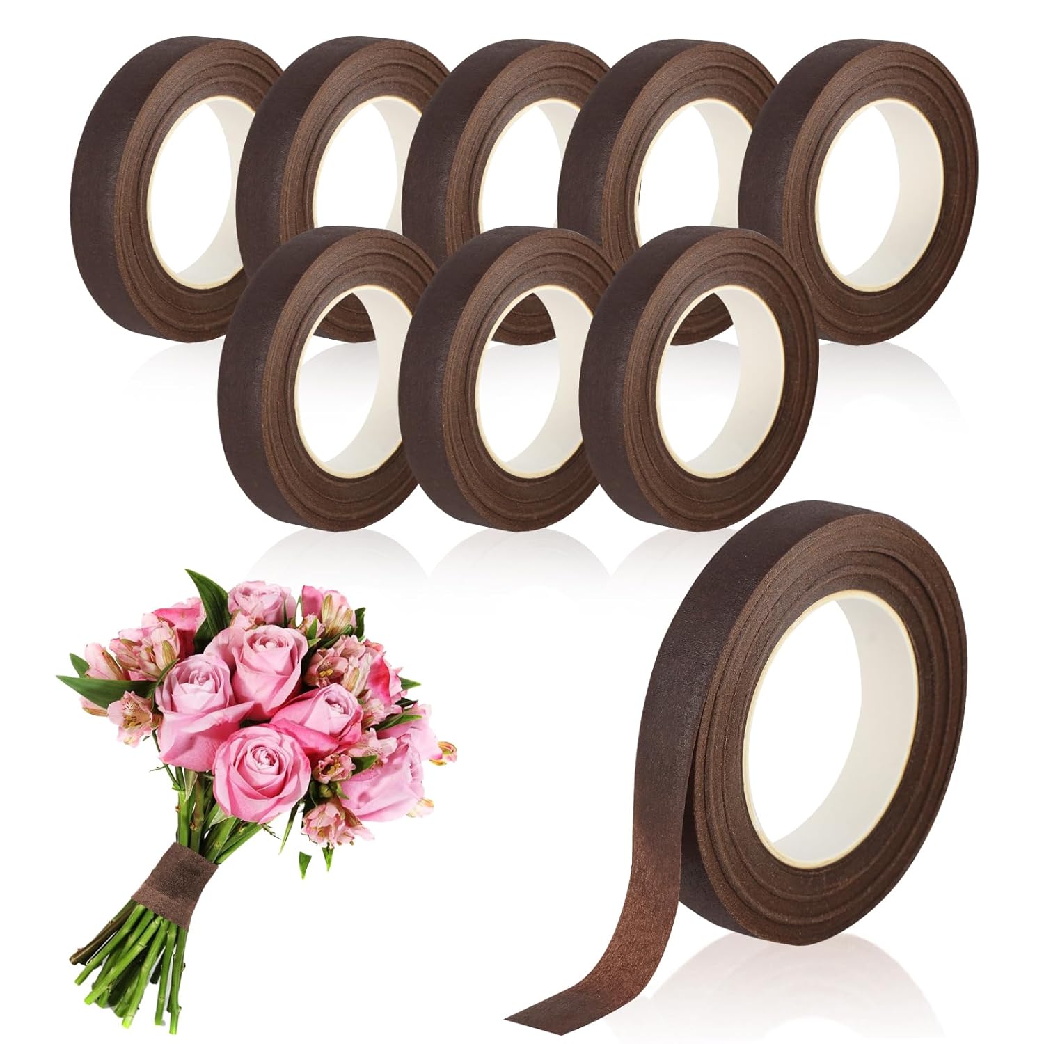 Phinus 9 Rolls Floral Tape, 1/2 Inch x 30 Yard Flower Tape, Green Floral Tape for Floral Crafts Supply, Bouquet Stem Wrapping, Wedding Bouquet (Brown)