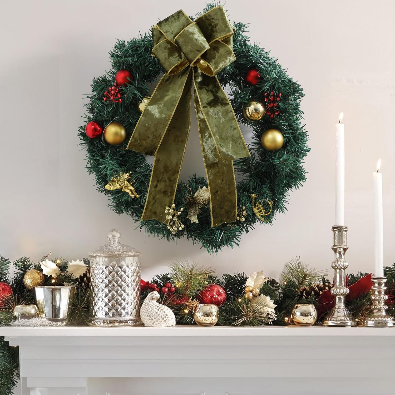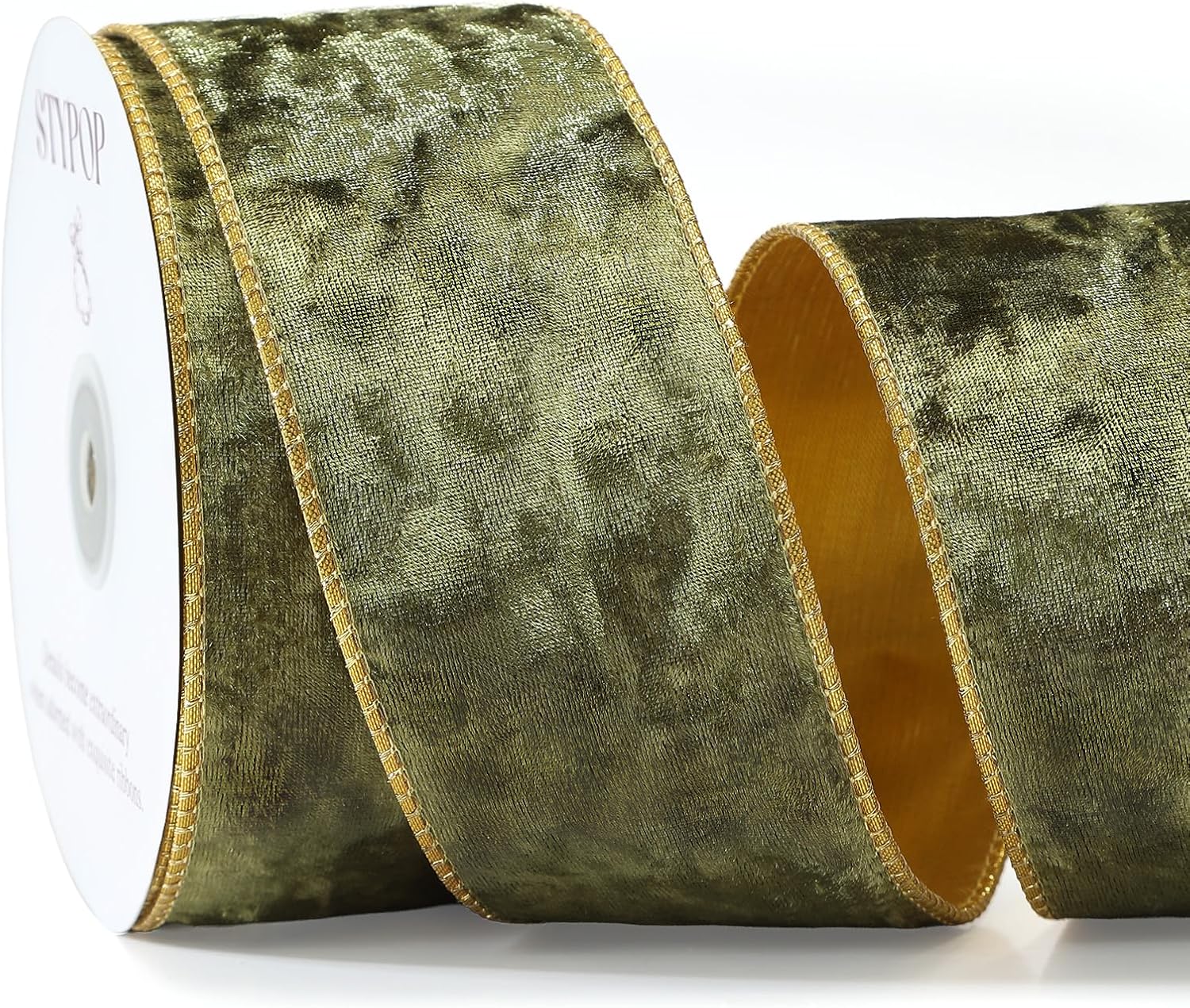 Olive Green Christmas Velvet Ribbon Wired (2.5" × 15 Yards) - Christmas Ribbon for Christmas Tree Decoration/Gift Wrapping/Crafts Wreaths Supplies