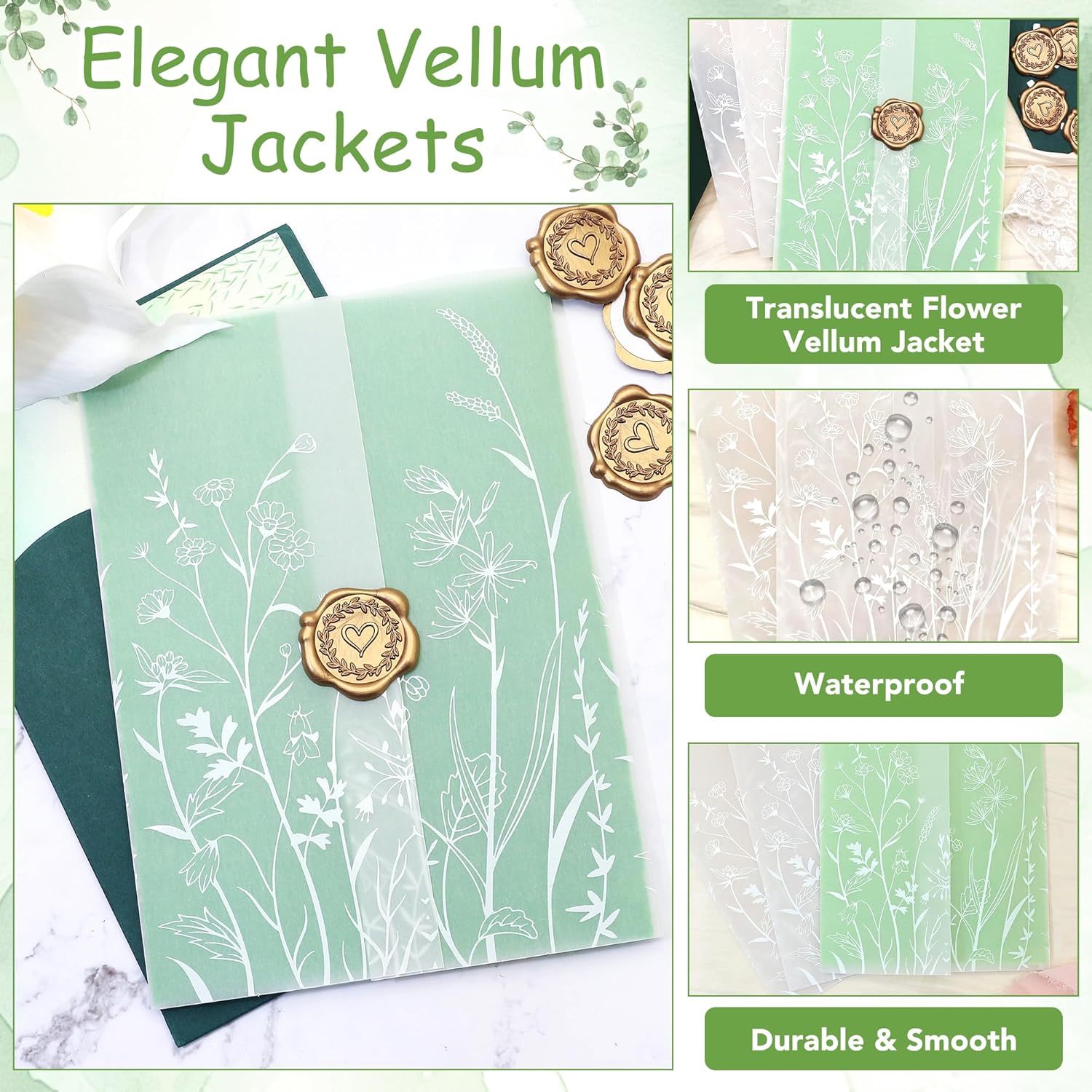 - Exquisite DIY Options: Package includes 50 packs of white wildflower vellum jackets. You can add stickers, wax seals or ribbon decorations according to your preferences to make your invitations unique and charming