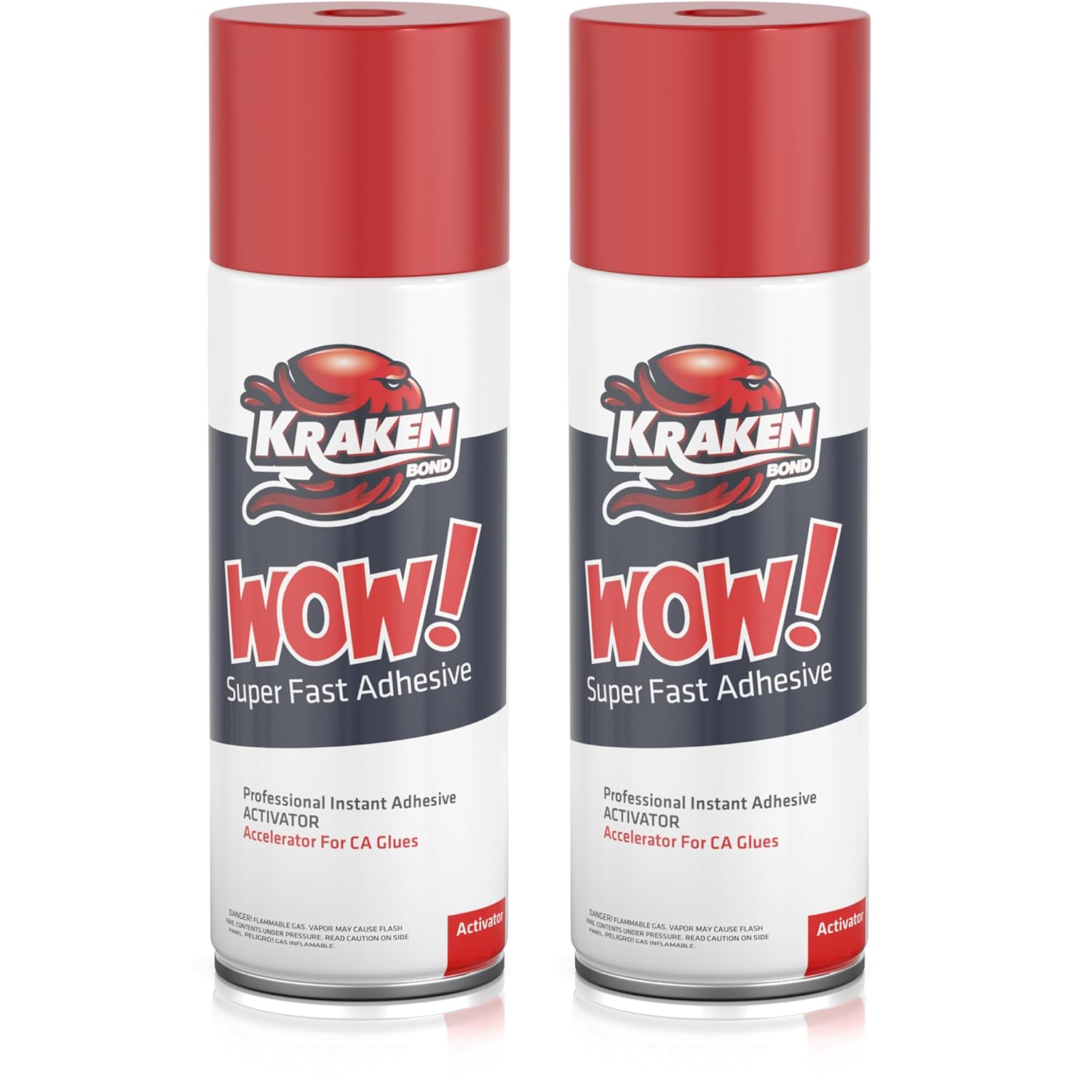 KRAKEN BOND Wow! Spray Adhesive Activator(2X6.76 Oz.) - Cyanoacrylate Super Glue Accelerator Spray for Plastic, Metal, Wood & PVC, CA Glue Activator | 2 Pack