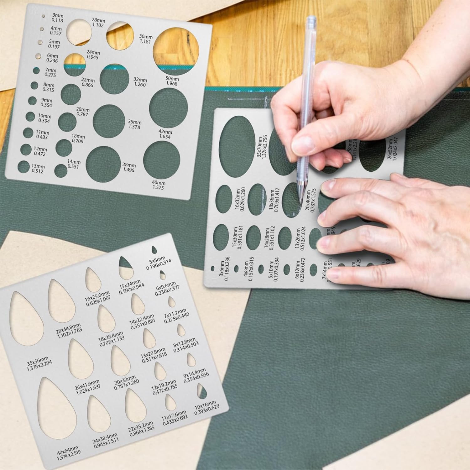 - 【Metal Material】The geometric stencil are made of high quality stainless steel material, sturdy and durable, not easy to break, deform or rust, the whole is carefully polished, comfortable and smooth to the touch. Each template is labeled with both millimeters and inches next to the pattern, which can be reused to provide you with long-term service