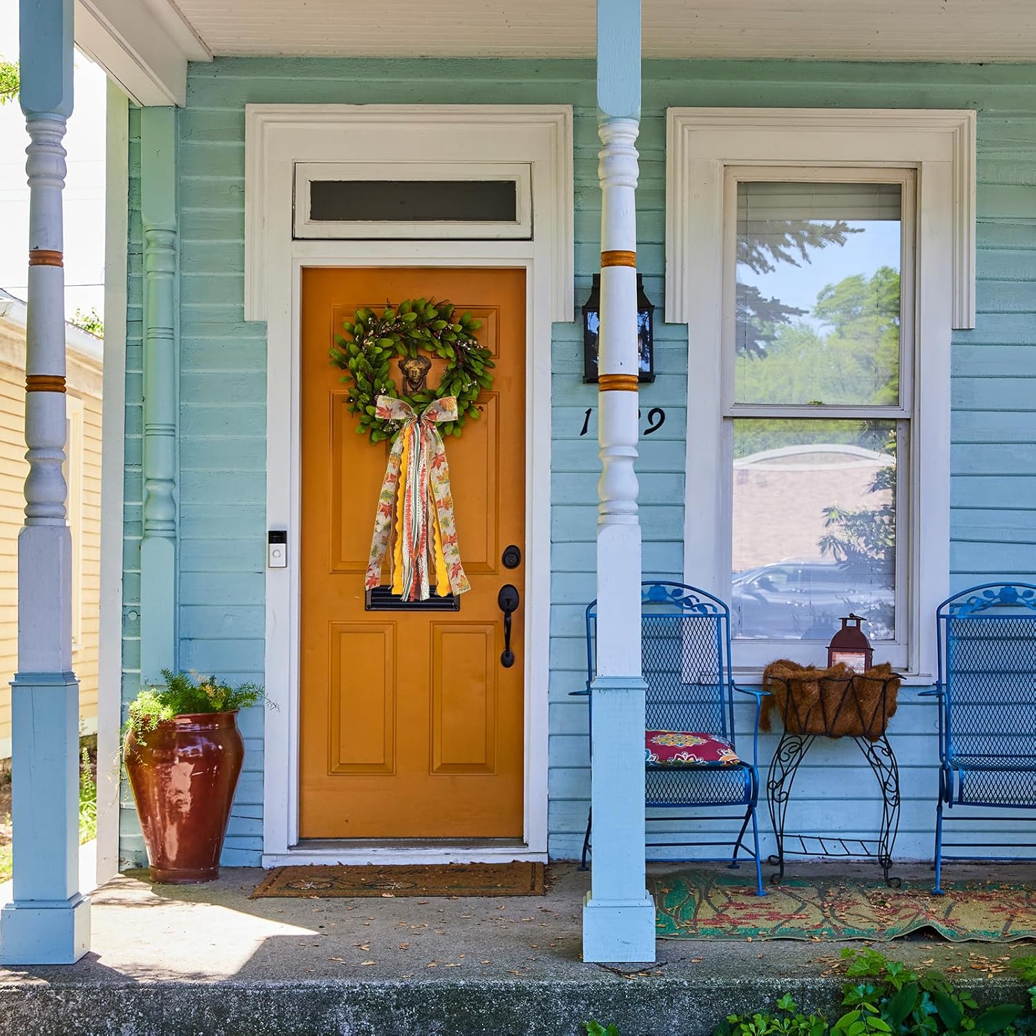 - Easy Hanging: Our large ribbon bow come equipped with a clip on the back, you can hang easily on windows, doors, wreaths, banisters, fences, trees, porch, garland, yard, posts, swags, mentals, and so on. Both outside decorating and inside decorating are suitable.