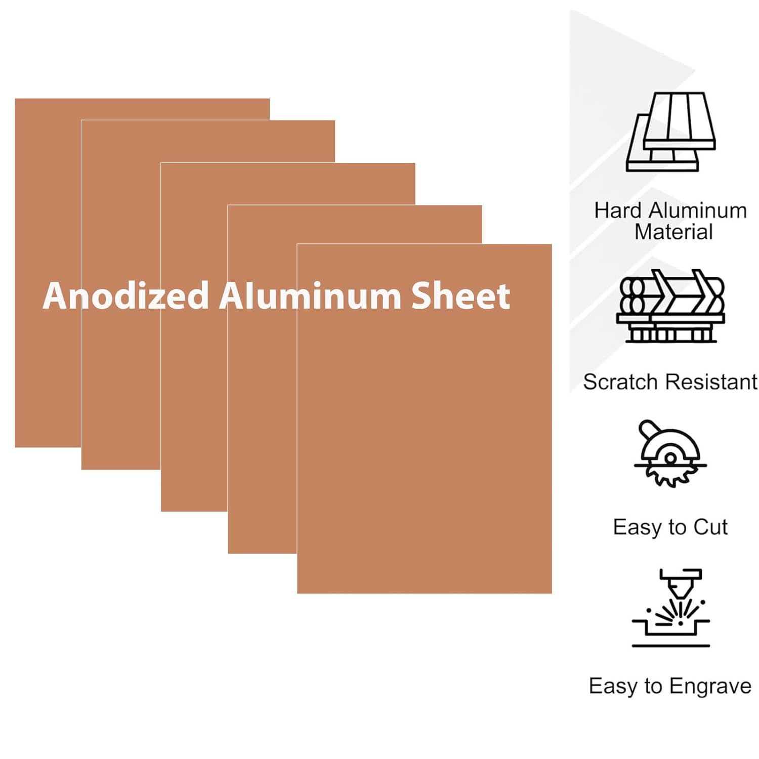 - 【 Premium Anodized Aluminum Sheets】:Made from 5052 aluminum alloy, these Rose - gold anodized sheets measure 5" x 7" x 1/32" and come in packs of 10. The protective PE film ensures scratch resistance, making them ideal for precision engraving and CNC projects.