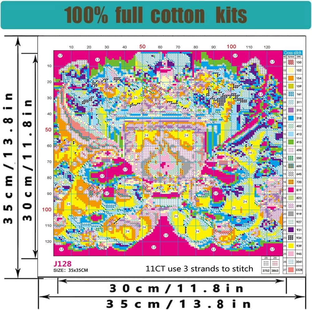 - Package:13.8*13.8inch, 2pc cross stitch needles, enough thread already sorted, English instructions,cross stitch patterns instructions,and 11CT Pre-printed stamped cross stitch fabric cloth. (11CT,without frame)
