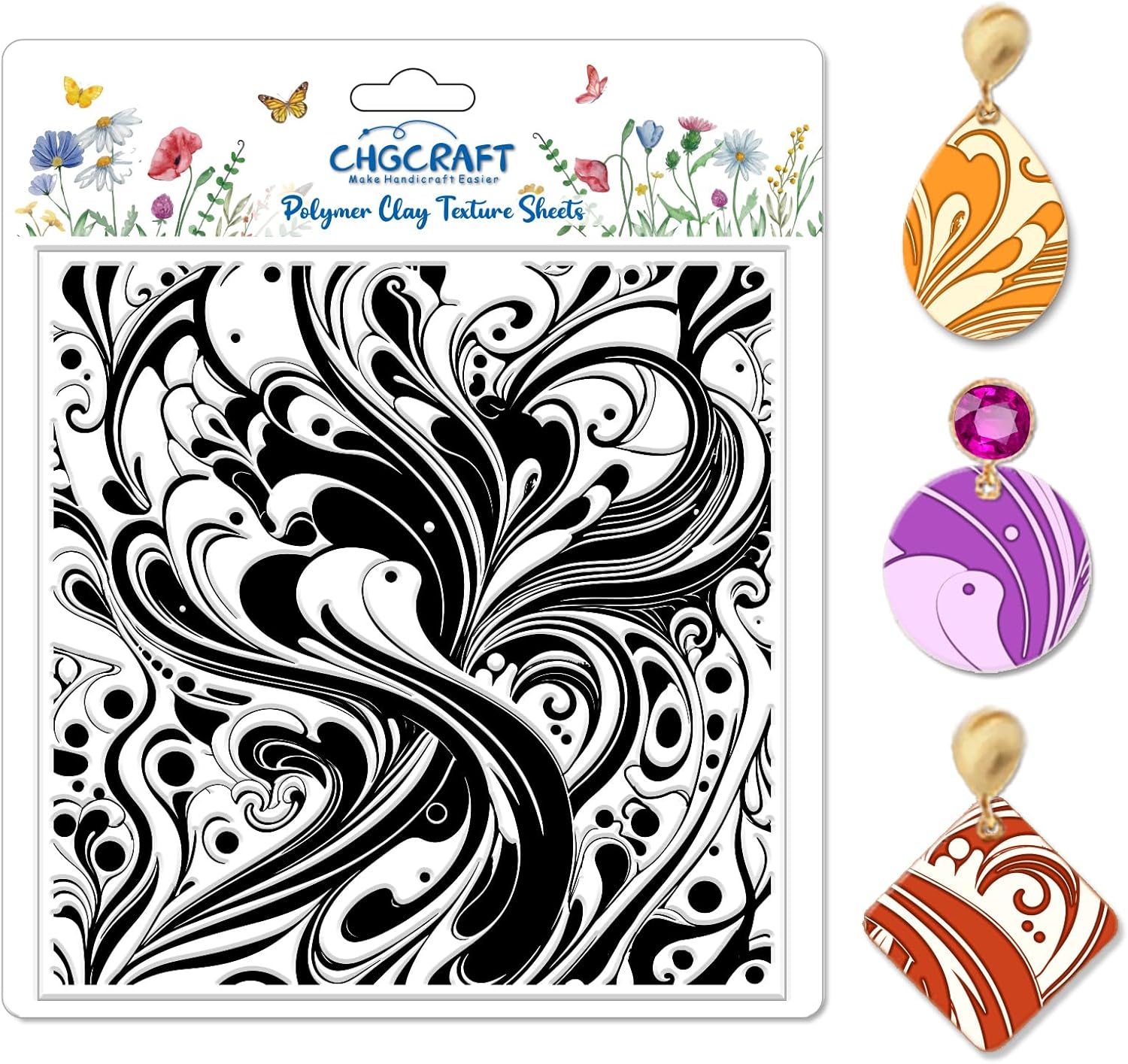 CHGCRAFT Artistic Pattern Polymer Clay Texture Sheets Fumes Silicone Stamp Water Flow Clay Texture Mat Modeling Pattern Pad for Jewelry and Clay Earrings Tools, 5.5x5.5 inch