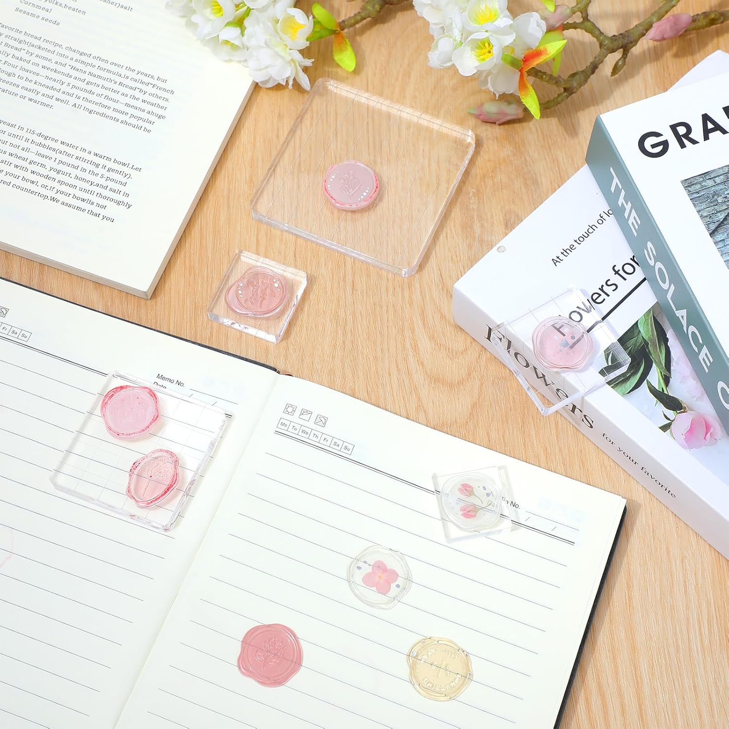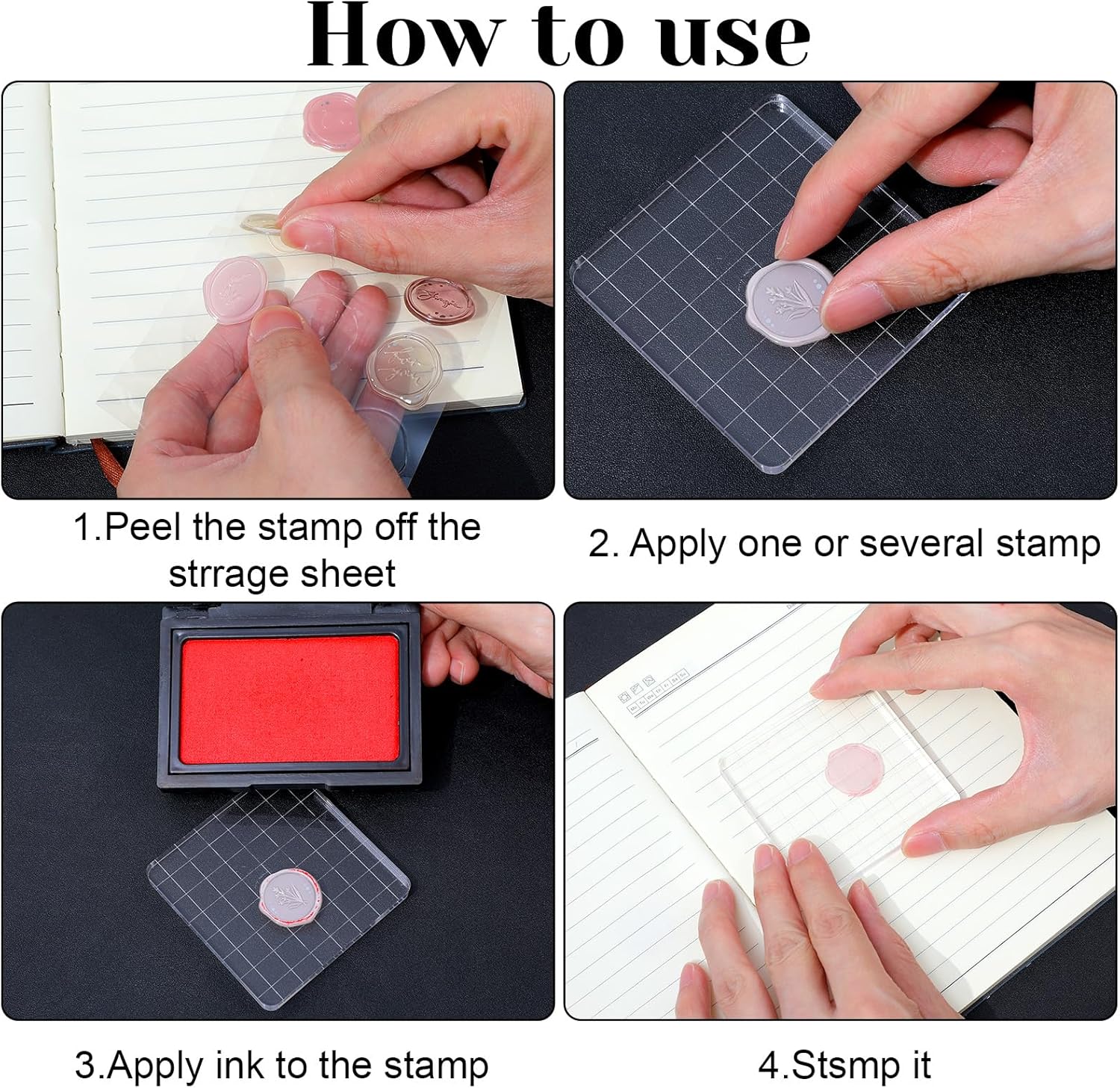 - 【Easy to Use】Before use, just tear off the protective film on the surface of the clear stamp block. Stick the stamp on the stamp block, apply ink, and press it to the surface you want. Clear grid lines help you align your stamp accurately, ensuring professional results every time