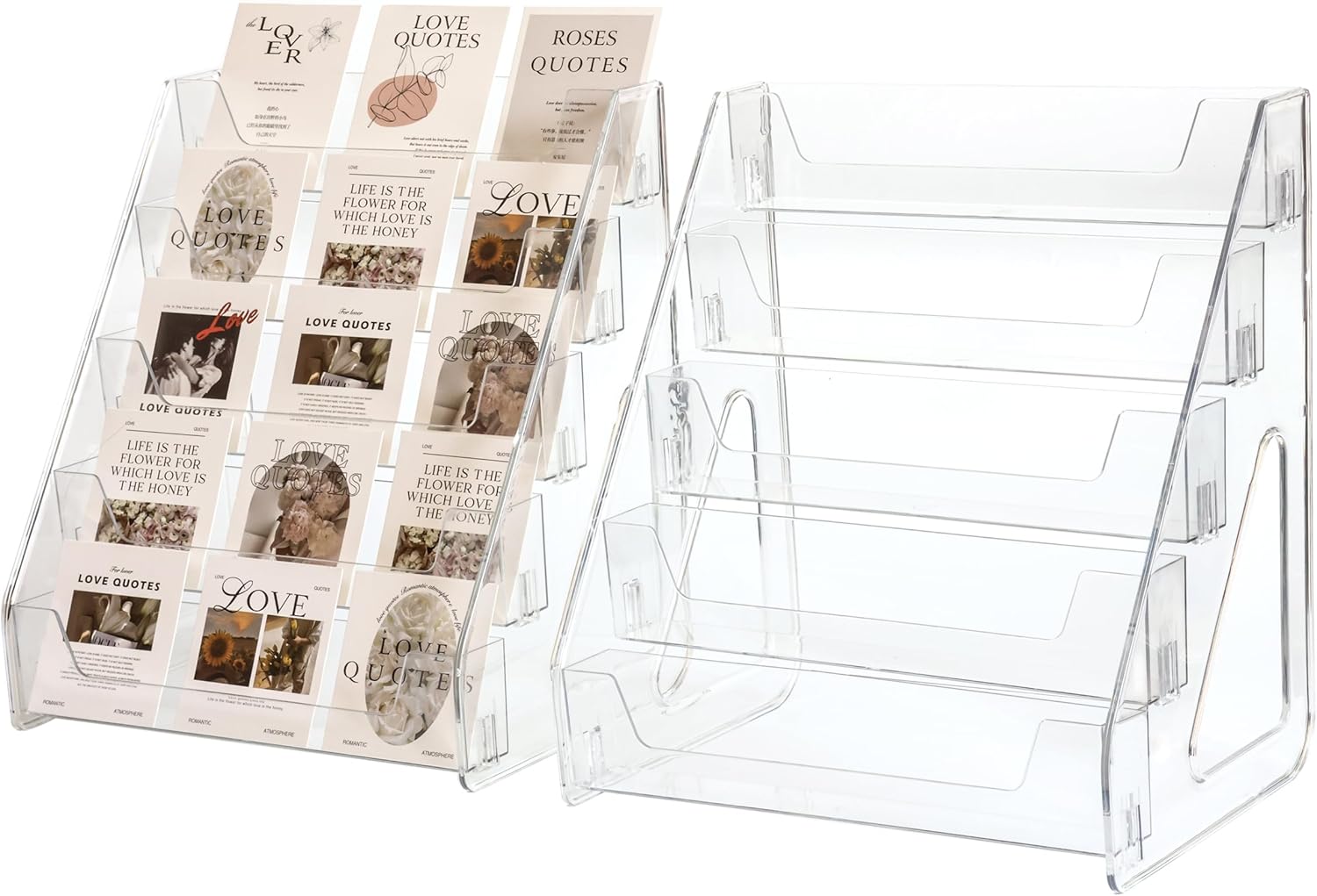 Card Display Stand set of 2, Clear 5-Tiered Shelf For Greeting Card, Stickers, Postcard, Sports Graded Card, Football Baseball Basketball Cards, Table Top Holder Display Rack For Psa Slabs (2 Pack)