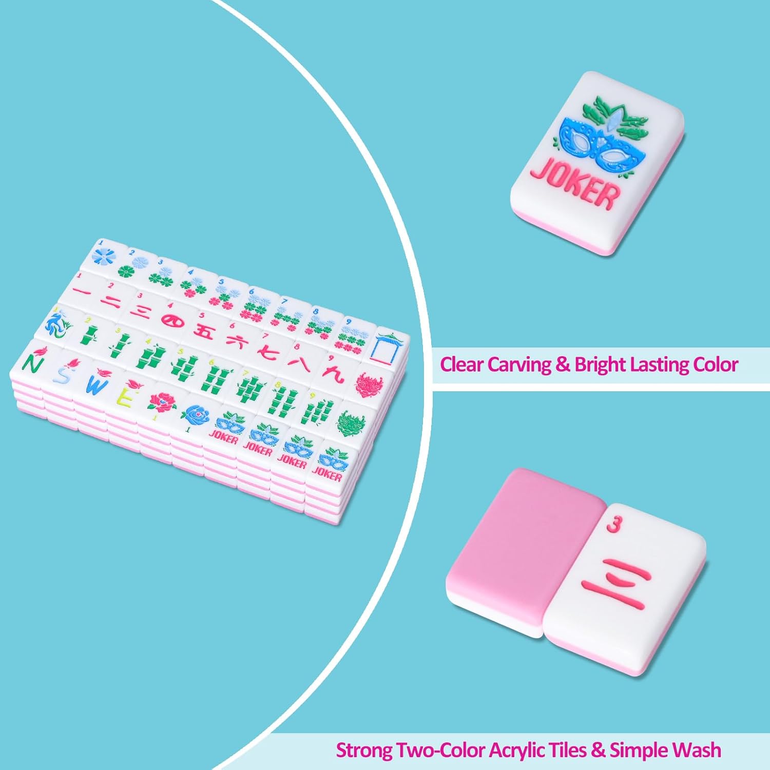 American Mahjong Tile Set(Pink) with Carrying Bag and Accessories, 160 Acrylic Engraved Mahjong Tiles