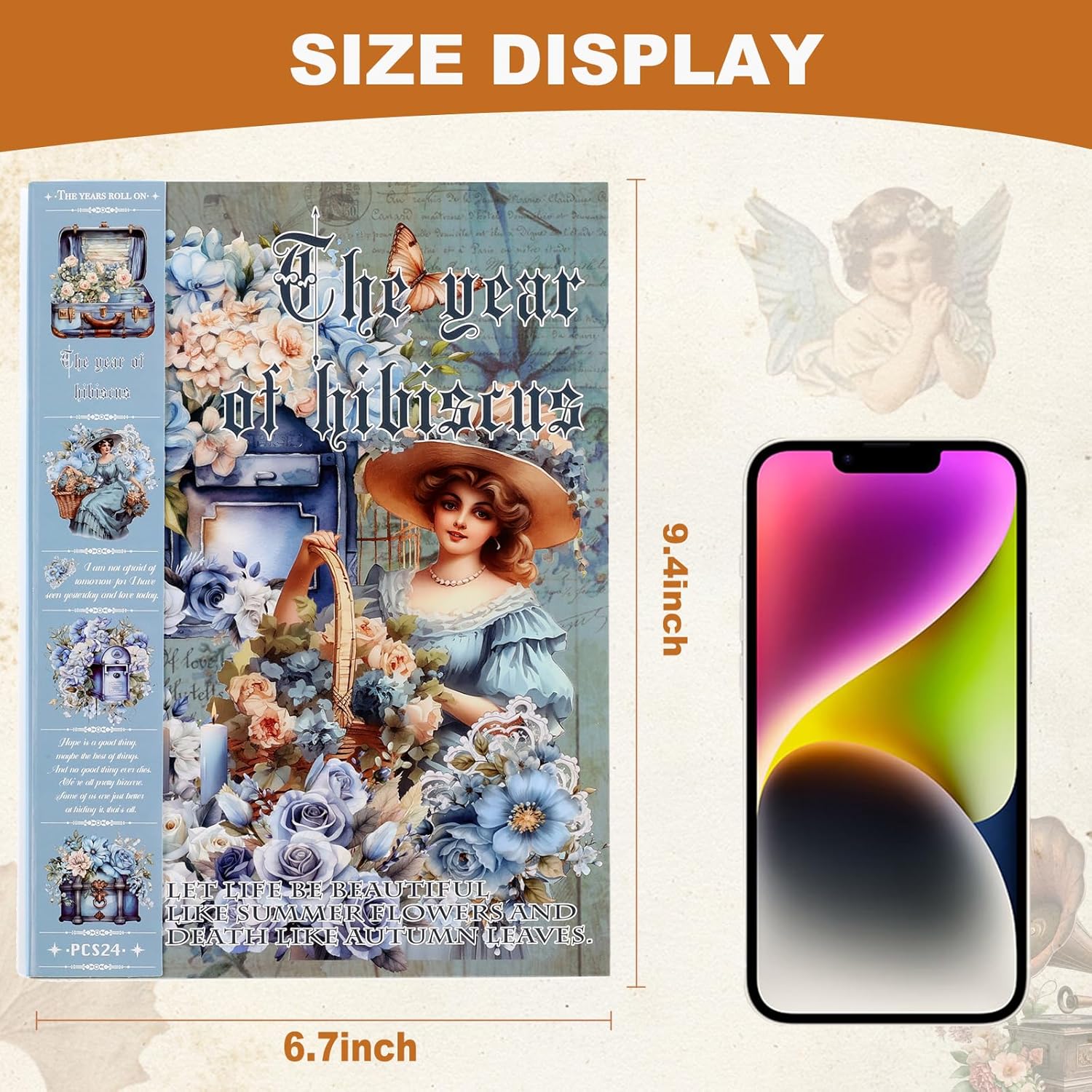 Vintage Ephemera Sticker 24 Sheets precut 300 washi Stickers Paper Journal Stickers for Adults People Junk Journal Sticker Book Scrapbooking Supplies