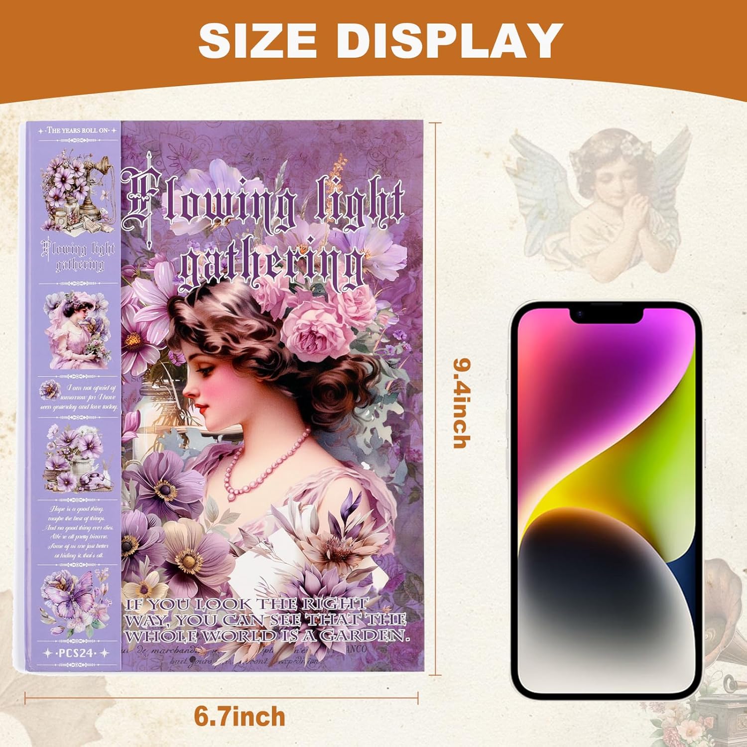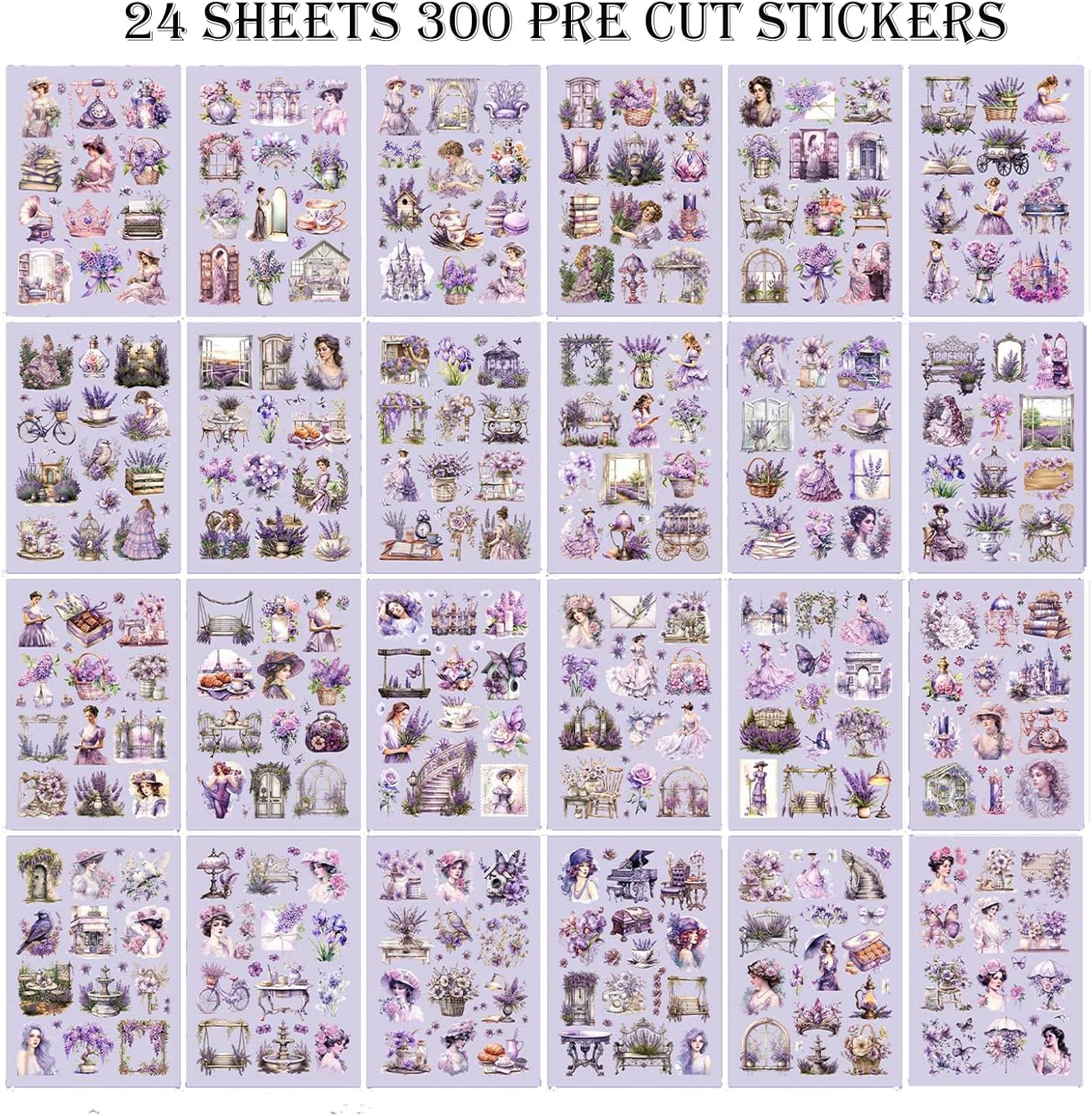 Vintage Ephemera Sticker 24 Sheets precut 300 washi Stickers Paper Girls Journal Stickers for Adults Junk Journal Sticker Book Scrapbooking Supplies
